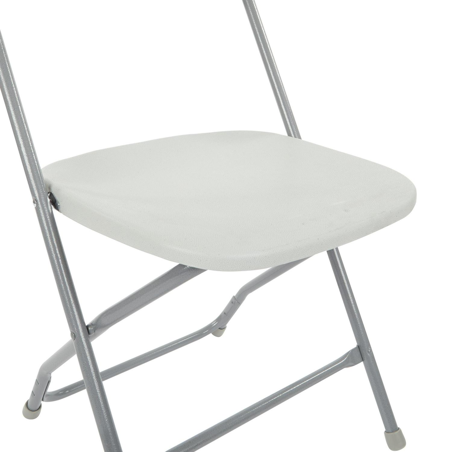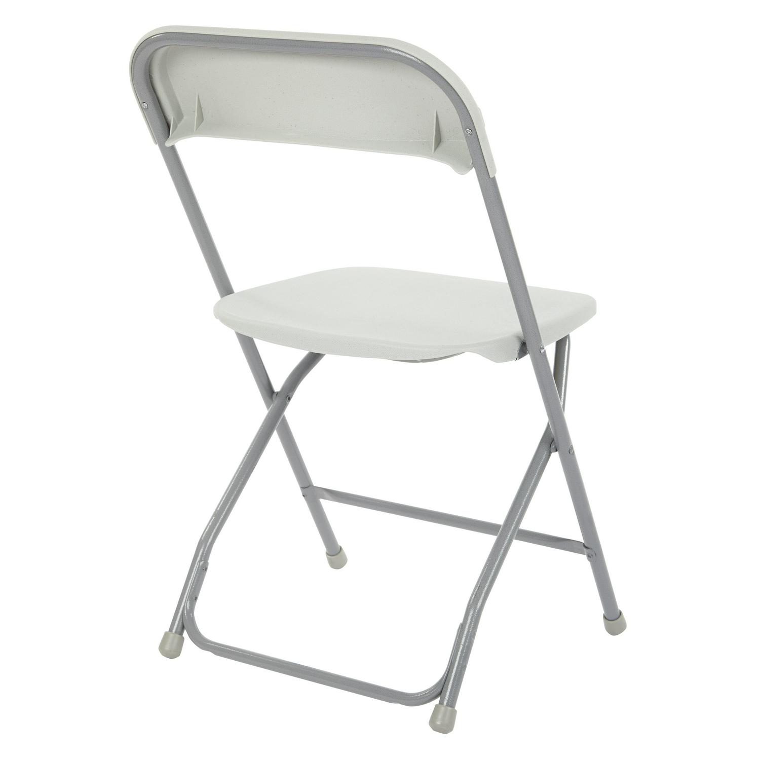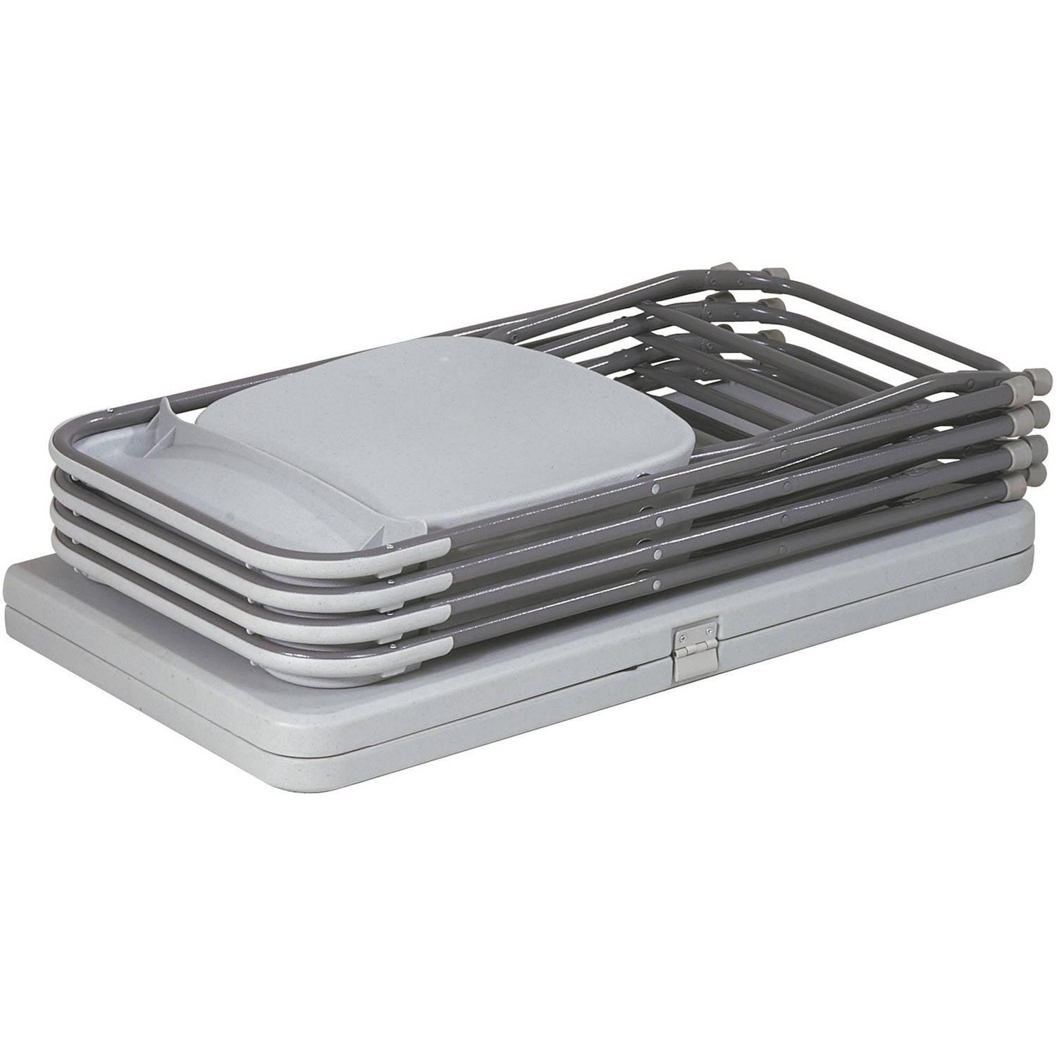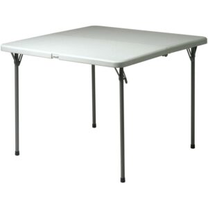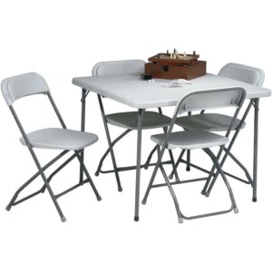 Office Star’s resin furniture offers economical and user-friendly solutions for all your seating needs. Both lightweight and durable, this five piece furniture set features 4 heavy-duty chairs along with a 36 inch square resin top table. The steel tube frames offer low-profile strength and rubber end caps protect floors from marring. The table folds in half and the chair seats flip up and stack neatly for storage. Designed for easy clean-up and lasting durability, this set arrives fully assembled and ready to go for your next social gathering