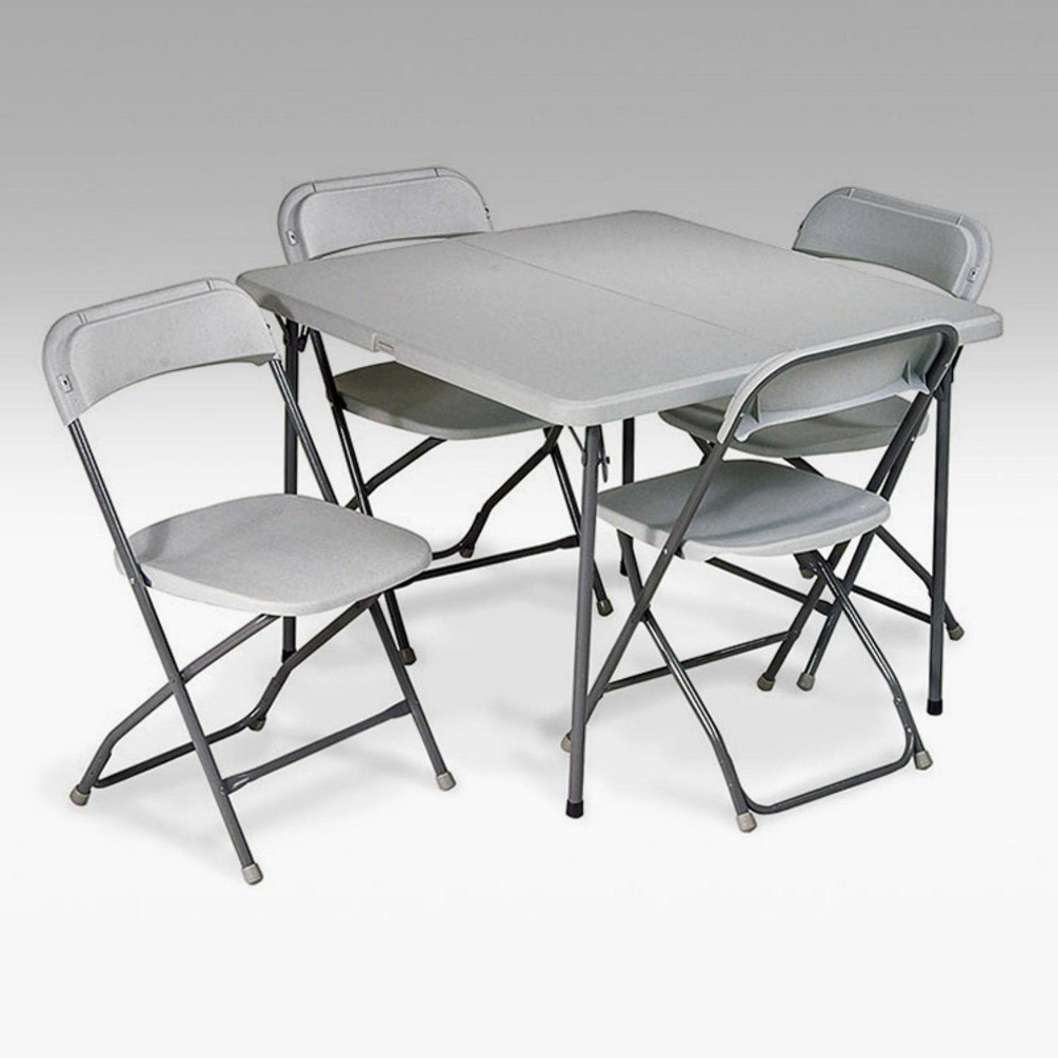 - 5-piece folding table and chair set includes 4 chairs and 1 square table