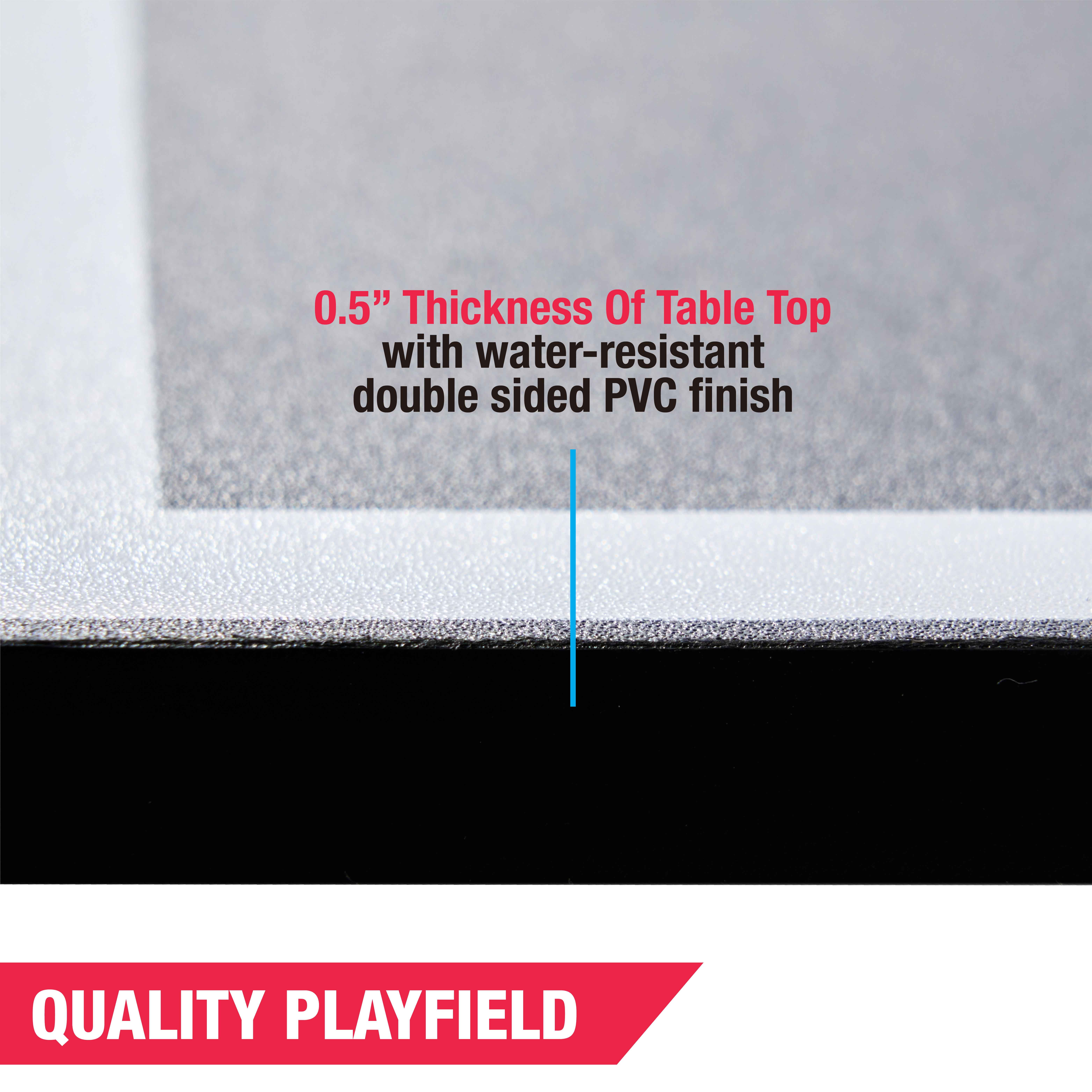Indoor Table Tennis Conversion Top, Blue, by MD Sports Save on space and convert most any air hockey or billiard table into a table tennis table Official 9 ft. (108in) x 5 ft. (60in) tournament size 12mm thick playfield with a set of premium clamp-style net and post Cushion protection pads under the table will help avoid scratching up your billiard or air hockey table Fold-up design when not in use Assembled dimensions: 108 in x 60 in (LW) Package dimensions: 59.25 in x 35.43 in x 4.41 in (LWH) Packaging weight: 90.20 lbs Some assembly required to connect the 4 table sections into 2 separate halves