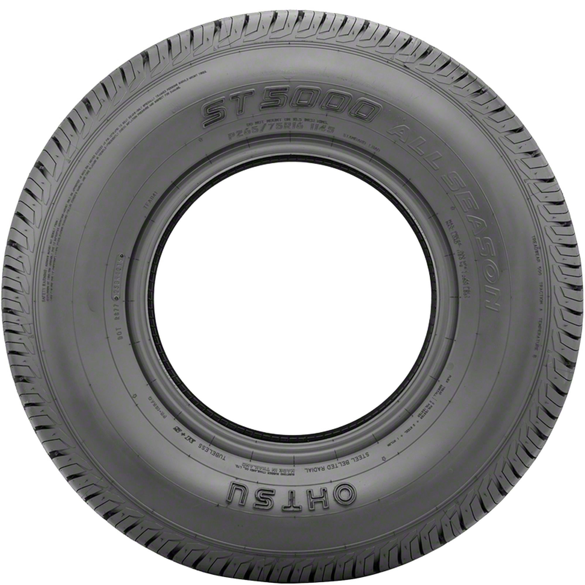 Ohtsu ST5000 P265/70R17 113T OVERVIEW OHTSU ST5000 offers M S all-season performance with symmetrical non-directional tread pattern for unrestricted rotation and superior life. In challenging weather conditions, the ST5000 tire displays excellent lateral handling and highway stability due to its solid center rib. Four wide circumferential grooves combined with a deep tread design, makes the ST5000 suitable for all weather conditions.