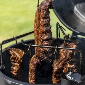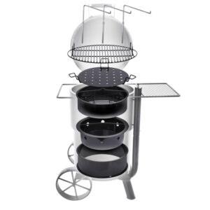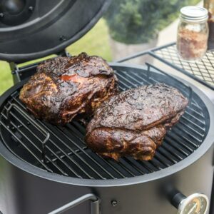 – Oversized, eight-pound charcoal basket holds enough charcoal for over 10 hours of smoking time