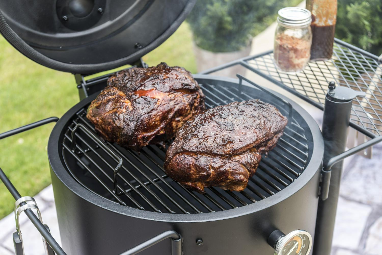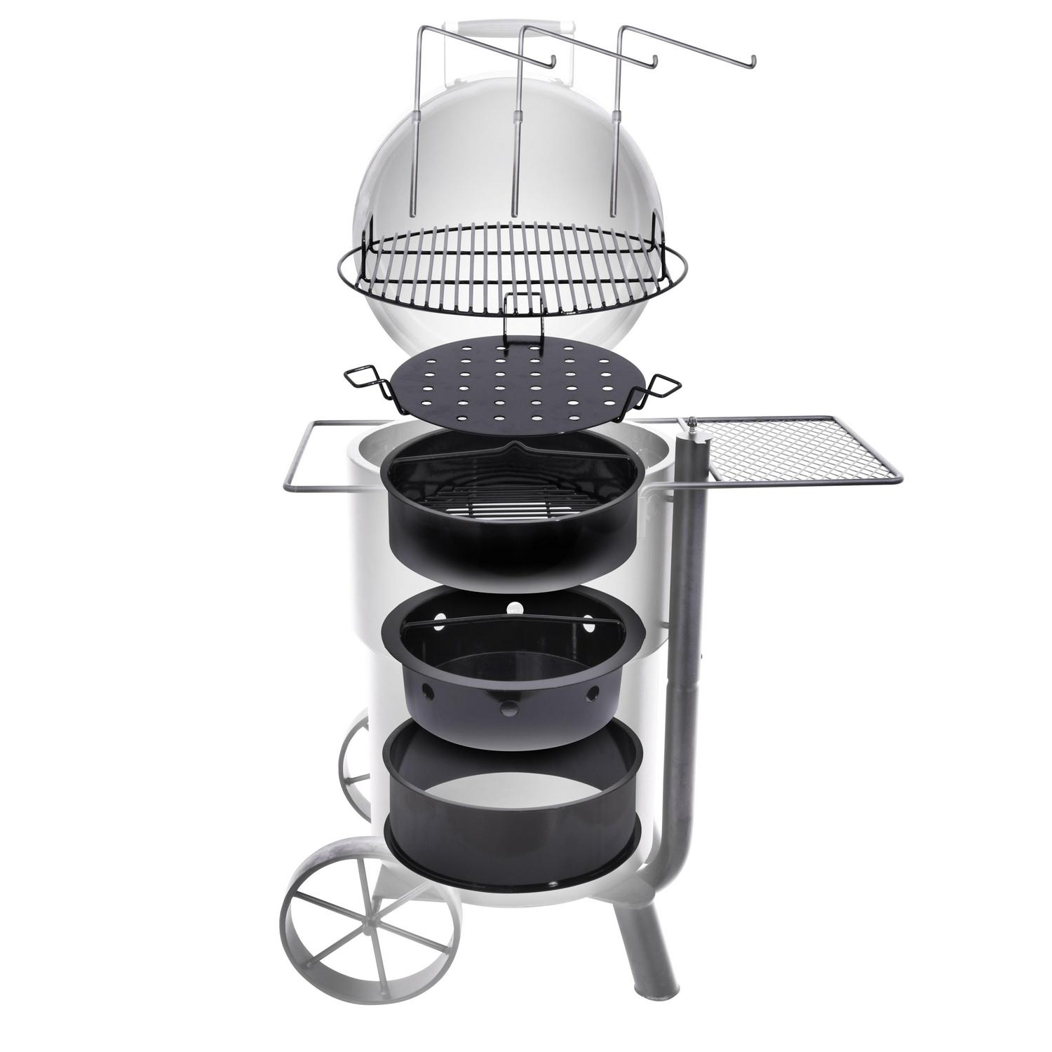 - Oversized, eight-pound charcoal basket holds enough charcoal for over 10 hours of smoking time