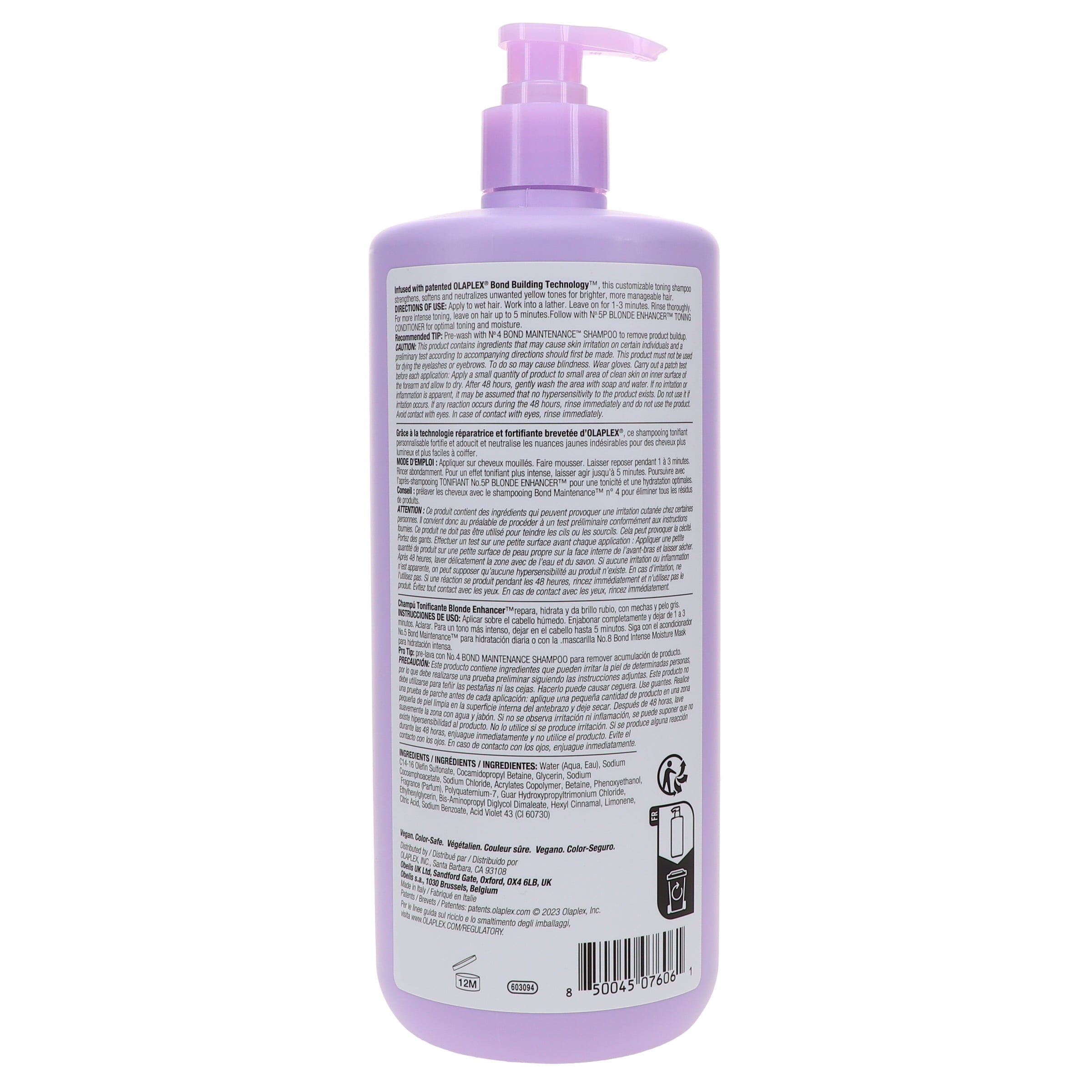 Olaplex No.4p Blonde Enhancer Toning Shampoo 33.8 oz is a highly concentrated purple shampoo that neutralizes brassiness and boosts brightness after one use for all blonde, lightened, and gray hair. The sulfate-free formula creates a rich lather while cleansing, toning, and repairing your hair.