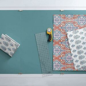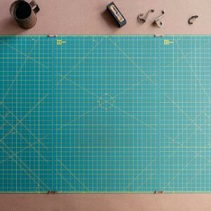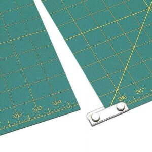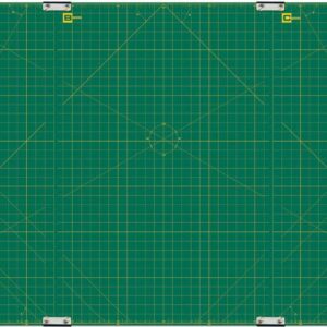 Protect larger work surfaces and the life of rotary blades with this self-healing mat! This package includes three 23×35 inch mats and four mat clips to tightly hold the mats together for continuous cutting and numerical measurement. The mat is 1.5mm thick and double-sided; features a dark green base and yellow grid lines on one side and a solid green base on the other. Store mats flat, do not roll. Keep away from extreme heat and cold. Imported.