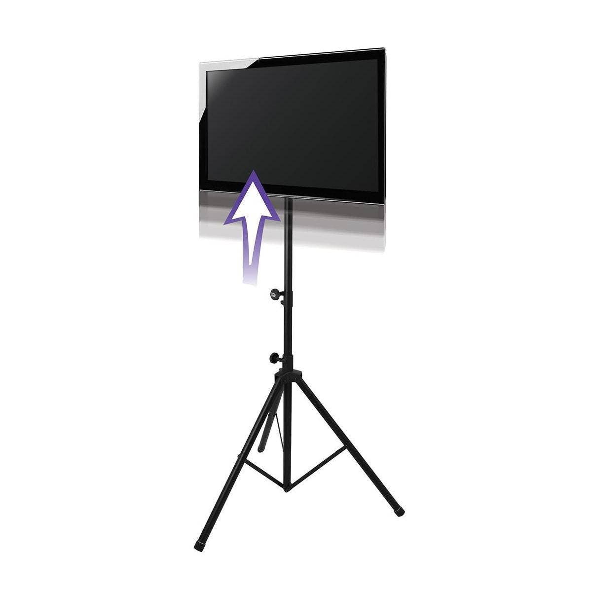 The FPS6000 is a high performance, highly portable, and highly affordable solution for production companies, sound contractors, DJ?s, tradeshow presenters, and anyone else needing mobile video. At the heart of the FPS6000 is its gas-charged center piston with 40lbs of lifting power. This internal mechanism counteracts the weight of the flat screen, making it easy, safe, and fast for one person to lift and lower a mounted television/monitor. The FPS6000 is portable, lightweight, and freestanding. VESA compatibility means the FPS6000 works with any flat screen device sporting a 200 x 200 VESA mount pattern or smaller. A steel friction collar adjusts overall mount height from 47? to 74?, and tilt is adjustable +/- 15 degrees, so viewing angle can be tailored to any space. For safety, the center shaft is marked at the exact position where the tripod leg housing creates the optimal 45-degree angle for the legs. These aluminum legs work with the steel center shaft to blend light-weight and strength for a truly portable yet sturdy stand.