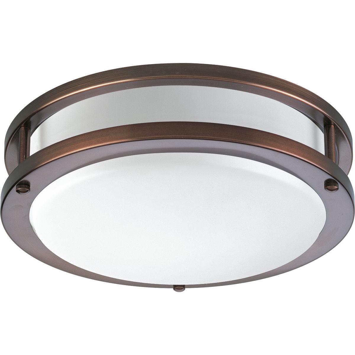 One-Light Urban Bronze LED close-to-ceiling. Surface mount round with clean modern lines and white acrylic diffuser. DC LED light engine with 1027 delivered lumens at 3000K and 90+ CRI.