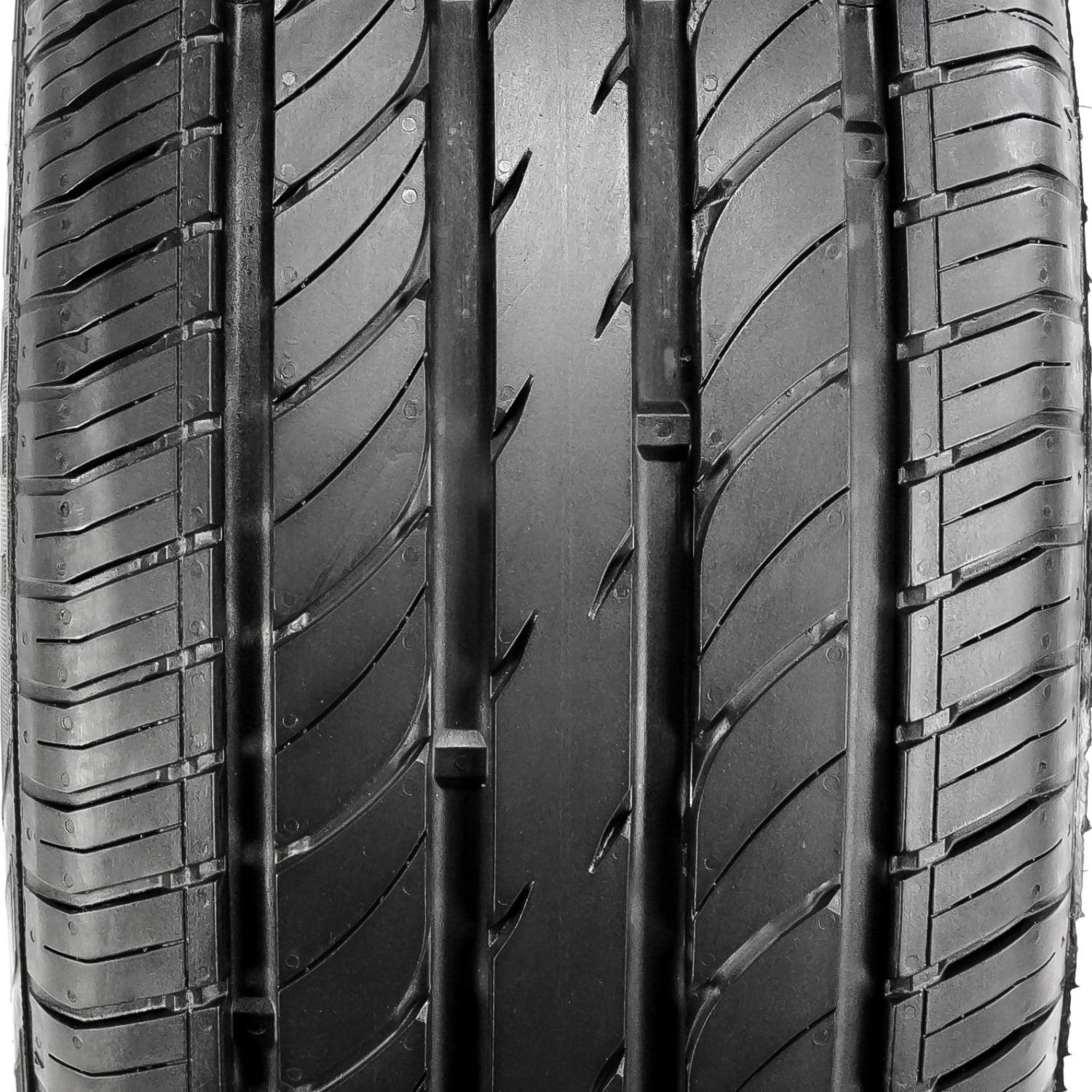 The tire increases the high speed controllability. It utilizes the asymmetric tread design in order to boost the surface contact. The center rib’s close and consistent road contact enables the tire to greatly improve steering responsiveness and driving stability. As a result, the tire guarantees the driver’s better control over the vehicle at all times. The siping and notch pattern allows the tire to generate friction at the moment of braking, significantly shortening the braking distance. The heat-resistant compound and the stronger structure also work together to boost the high speed durability. This prevents the tire’s deformation, while heat build-up is avoided which ensures a secure high speed performing ability.
