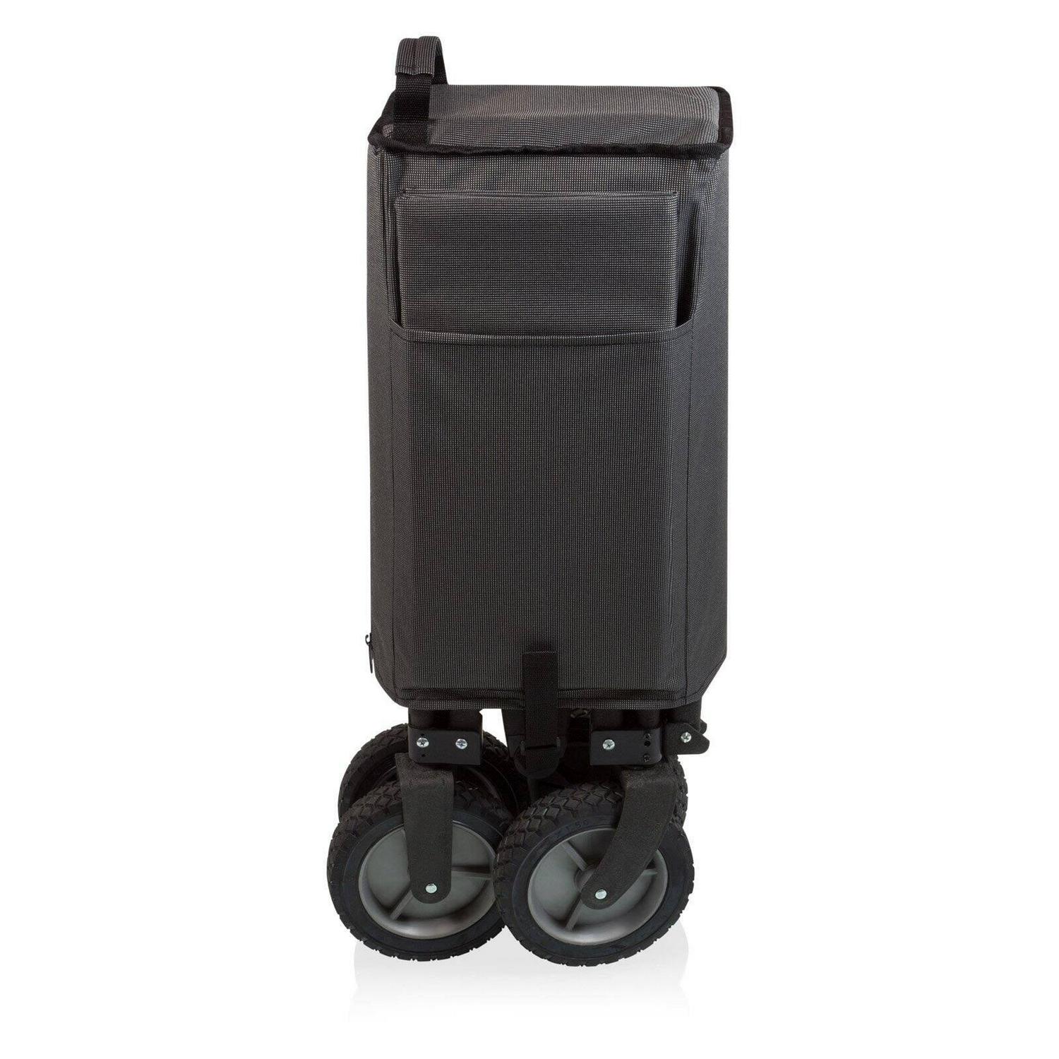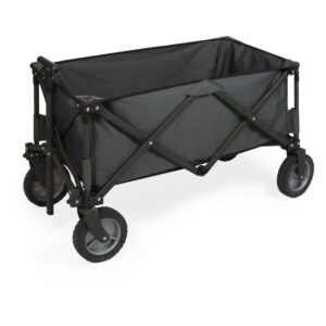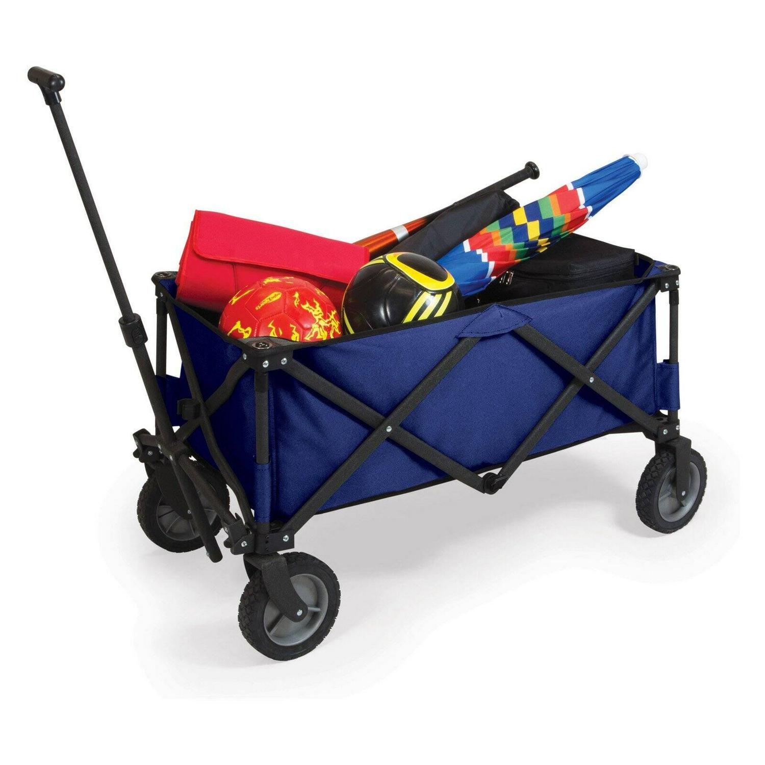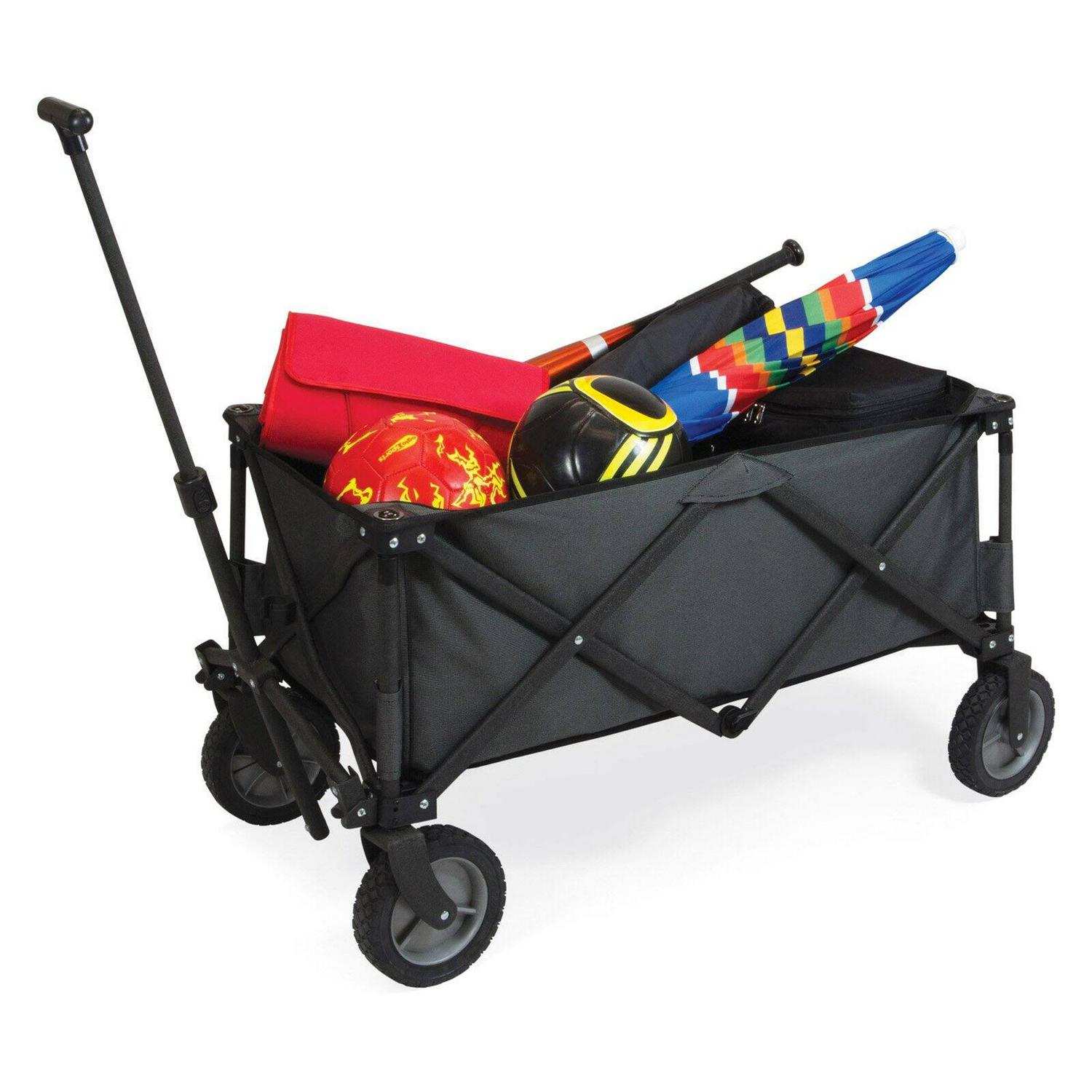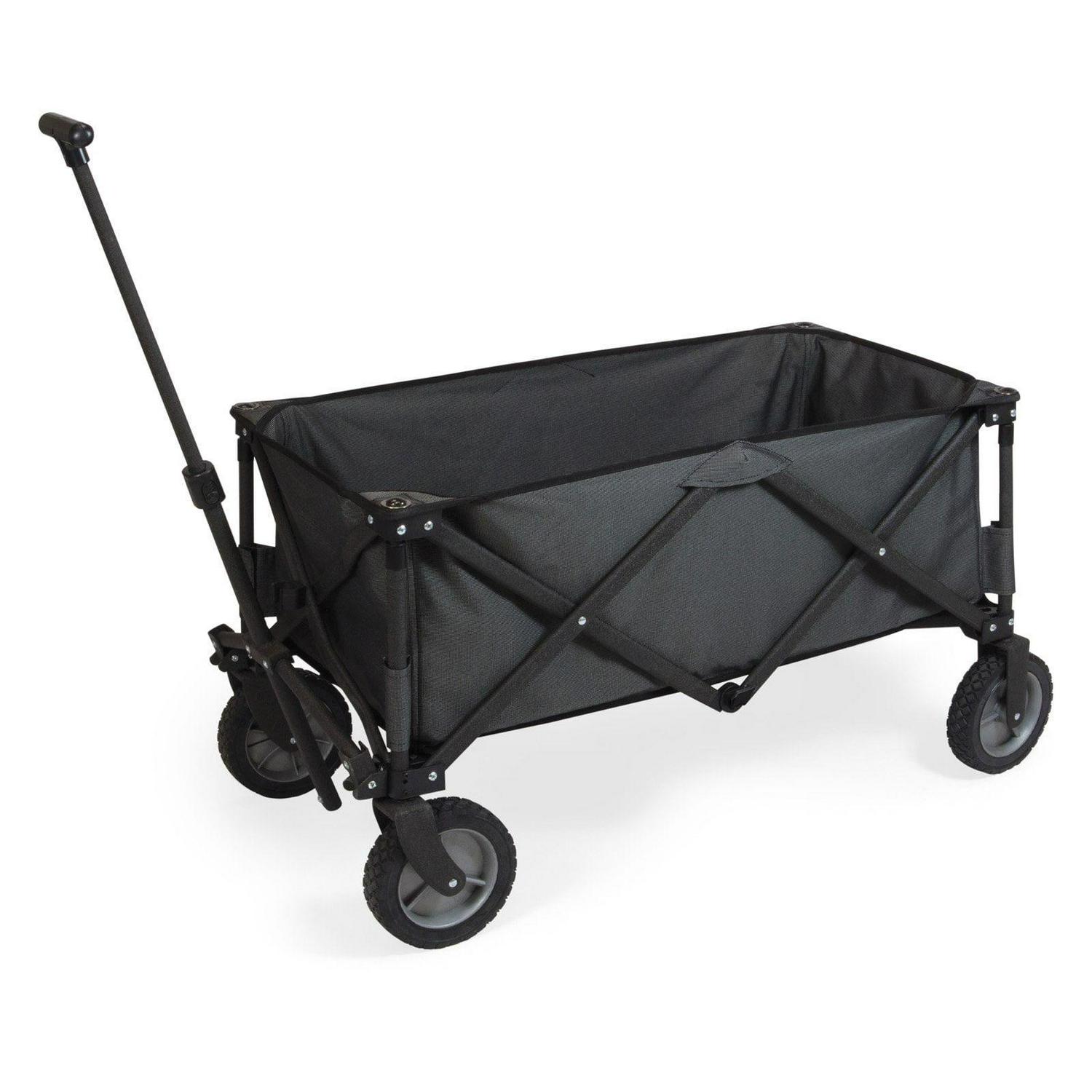 Take food, gear, and accessories along with the ONIVA Adventure Wagon Folding Utility Wagon, featuring a durable fitted carrying cover. This rugged wagon includes all-terrain wheels and a telescopic handle to help you carry it from the car to your final destination. Fold it down to a compact size and store it away with the fitted carrying cover.