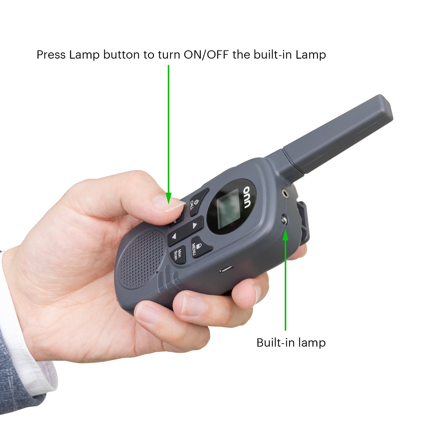 Onn. 23 mile walkie talkie with two way radios, LED light and 22 FRS channel options, stay connected with your family and friends! Whether you are standing guard over the neighborhood treehouse or hiking your favorite mountain trail with your crew, our Walkie Talkies will keep you connected when it matters most. Keep your communications private with 121 privacy codes and keep chatter off of your channel with these rechargeable walkie talkies that also come with belt clips and charging cable. The weather alarm will sound indicating that there is a risk of severe weather in your area. Talk onn.