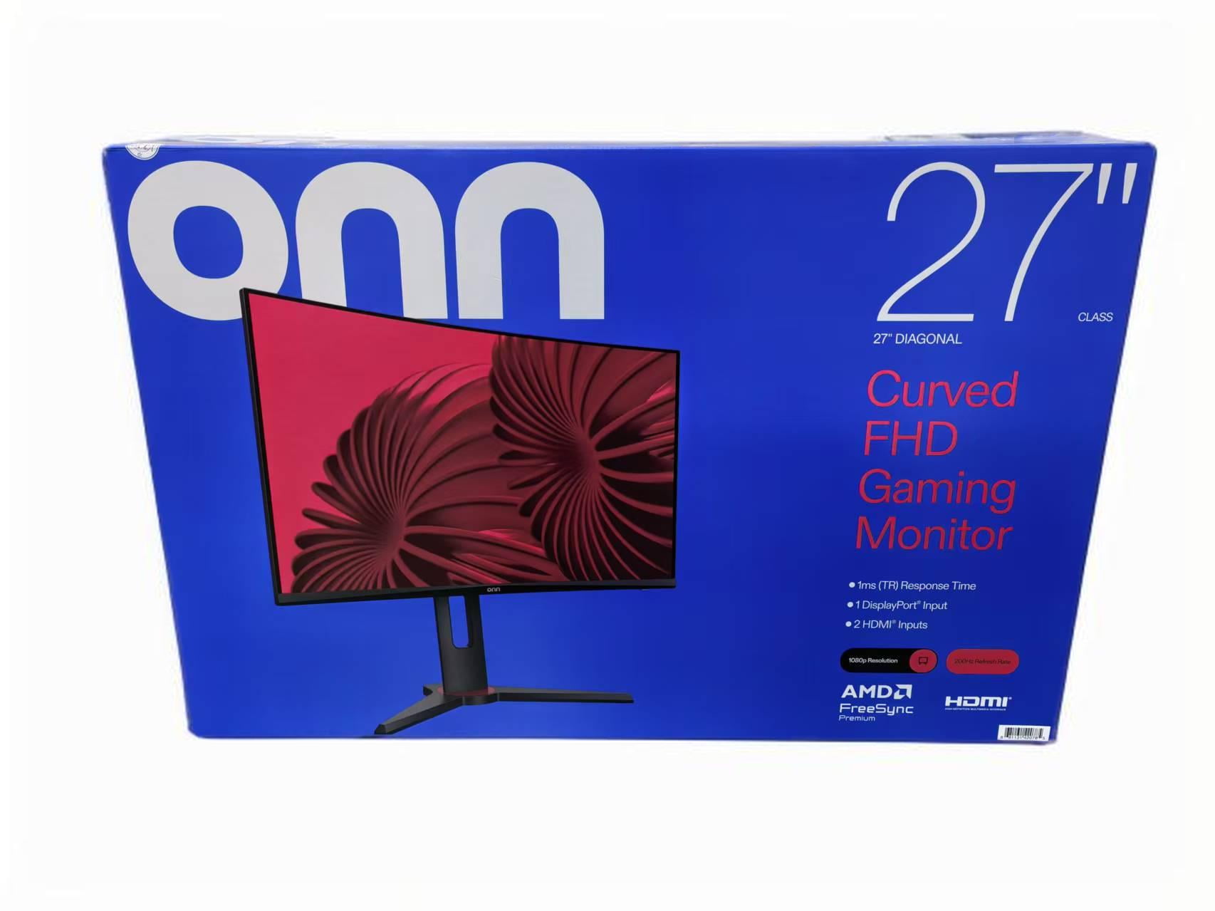 onn 27″ Curved FHD (1920 x 1080p) 200hz 1ms AMD FreeSync Gaming Monitor with Cables, Black