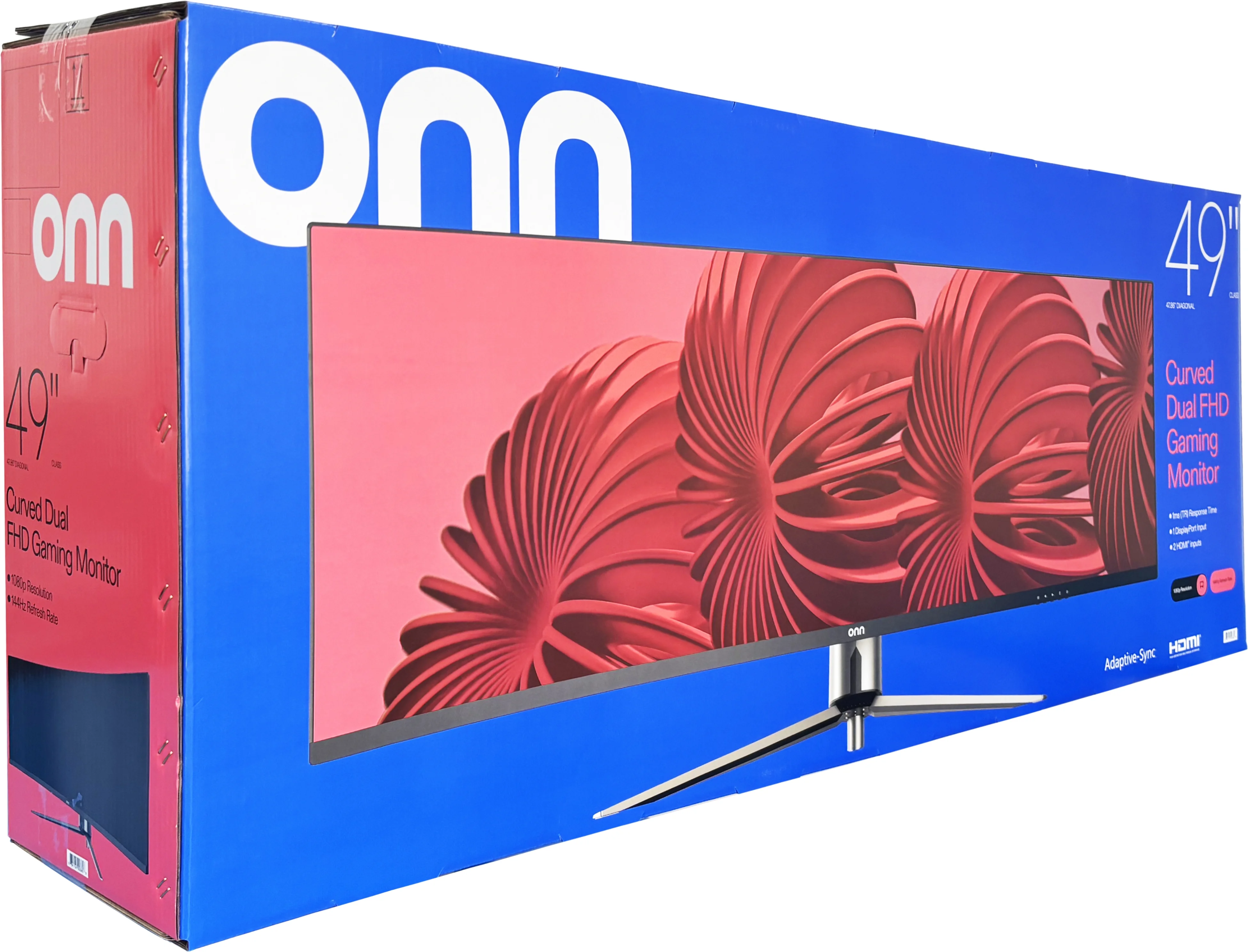 Expand your gaming vision with our new onn. 1080p Curved Dual FHD Gaming Monitor for exquisitely detailed picture quality, 5 visual gaming modes and stunning color delivery. DisplayPort and HDMI® connectivity ensures true digital content, and we’ve got you covered with everything you need to get up and running right out of the box. It’s got a widescreen, bezel-less display for more realistic immersion and visual comfort. It comes with a slender, adjustable stand that won’t crowd your desktop, but is also VESA-compatible to free up valuable workspace. Gaming has never looked so detailed, vibrant and crisp. Game onn. with our 49″ Curved Dual FHD Gaming Monitor.We’re onn. to something here. We took the hassle out of buying electronics and built a brand that’s fresh and simple. With delightful pops of color, finding the right product has never been easier. Say goodbye to stressful decision-making and fear of the electronics aisle. Our mission is simple… to deliver great products and make it easy. Choose onn.™ and get back to using your brainpower for the important things in life… like pondering the question, “What should I binge watch this weekend?”