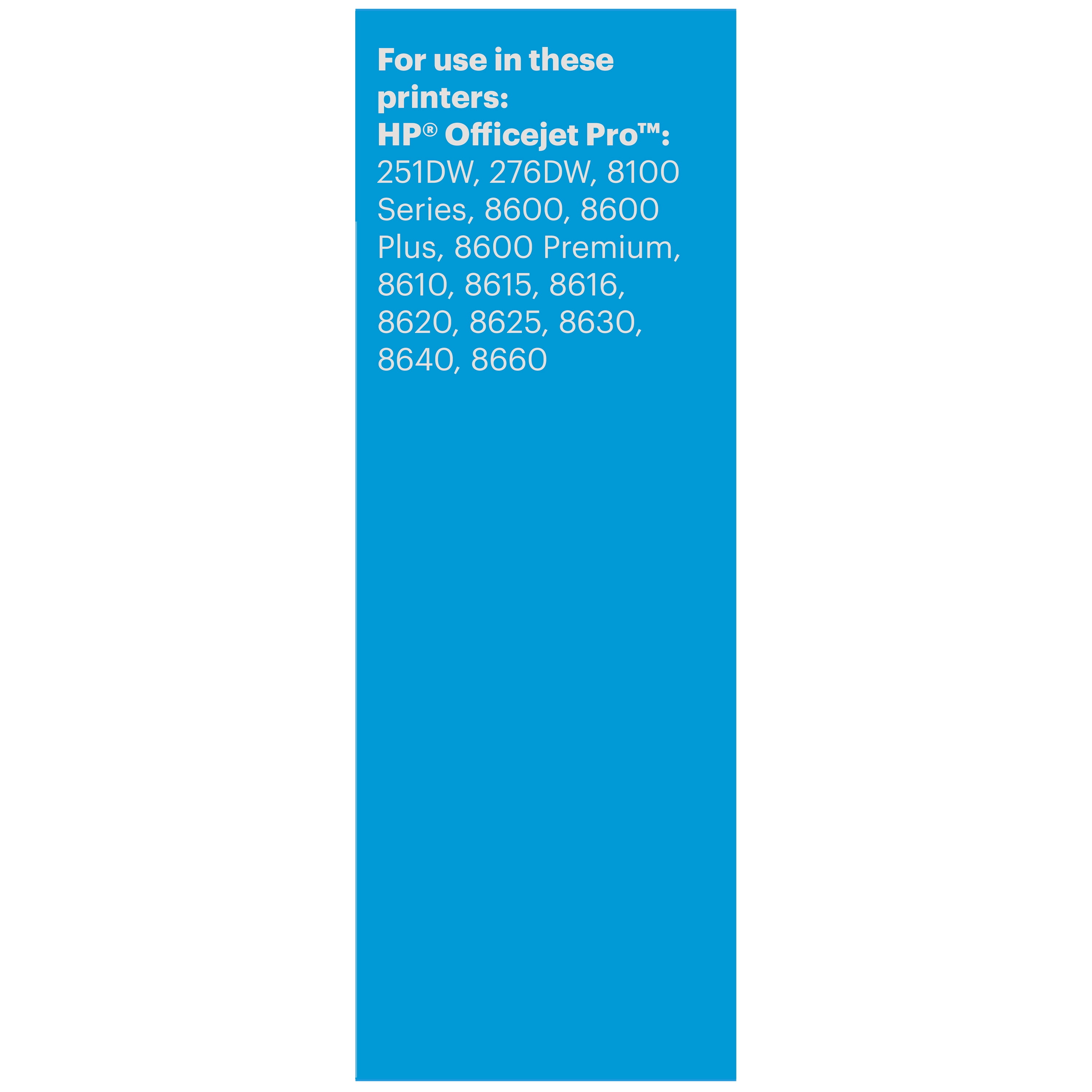 ONN™ brand Ink Cartridges provide high quality and great savings and are an ENVIRONMENTALLY FRIENDLY replacement alternative as it is a once-used genuine original that has been refurbished to perform like new. The use of this product will NOT void your printer warranty. Each cartridge processed has been specifically filled and then tested so it works like the original in your printer. XL = MORE INK in the cartridge, and MORE PAGES you can print. These cartridges work with: HP Officejet Pro 251DW, 276DW, 8100 Series, 8600, 8600 Plus, 8600 Premium, 8610, 8615, 8616, 8620, 8625, 8630, 8640, 8660. For support on your cartridge, call 877-925-3700; or go online to .