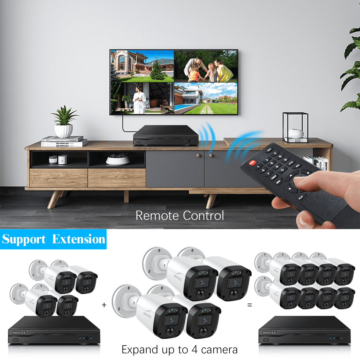 {130° Ultra Wide-Angle Lens Equipped} Optical wide-angle lens with multi-layer lens, provides you about 130° wide viewing angle and reduces dead ends of surveillance areas. {Full HD 5.0MP High Definition} The 5.0 Mega Pixel (2592 x 1944) High-Definition security camera ensures the more safety of people and homes for 24/7 hours. Everything within 80 feet can be seen even at night. It is equipped with an IR-LED system, automatically activates the infrared mode in low lighting conditions. {Super Night Vision} Embrace a new era of clarity with the OOSSXX outdoor cameras. Equipped with a high-resolution 5MP sensor and an IR cut filter, this security camera deliver unmatched visuals day and night. Enjoy a 80ft night vision range and an expansive 130° viewing angle, ensuring comprehensive coverage around the clock. {IP67 Waterproof Weather Resistance} Designed to withstand harsh weather conditions, the durable security camera system boasts IP67-rated waterproofing, allowing for reliable indoor and outdoor use regardless of the weather. With a top-quality ABS housing, this outside camera is built to endure extreme weather conditions from -40°C/-40°F to 60°C/140°F, ensuring their longevity and reliable performance. {Free App No Month Fee} Download the “Honestview” app for this outdoor security camera from your device’s app store to enjoy remote video access. Playback significant footage easily by searching through different days, hours, or minutes. with internet connectivity on this home camera system, you can view live videos from anywhere on your smartphone, tablet, or PC, ensuring you stay always connected. Camera Specifications: Lens: Optical Coating Lens Viewing Angle: 128° Shell Material: ABS Frame Rate: up to 15fps Image Sensor: 1/2.8″ CMOS Sensor Video Resolution: 5.0Megapixel (2592×1944) Signal Protocol: HD-AHD Analog Weatherproof: Yes. IP67 Night Vision: 845nm 2 Array Infrared LED Super Night Vision Zoom: Digital Zoom 5X Max DVR Specifications: Network Video/Audio Recorder: 8-Channel (Support SATA 2.5” or 3.5” ) USB Port: 2 x USB 2.0 Synchronous Playback: 4 Channels at the Same Time Video Resolution: 5.0Megapixel (2592×1944) Remote Access: iPhone/Android Phone App, Windows/Mac PC, IE Remote Control: Remote & APP APP Client: Honestview Support Audio Recording: Yes Power Supply: Input AC110~230V Video Compression Format: H.265+ What’s in the box. 5MP DVR 8-Channel Digital Network Recorder with 1TB Hard Drive X 1 5.0MP HD-Analog Wired Camera X 8 60ft Video&Audio 2-in-1 Cable for Camera X 8 12V2A Power Supply for DVR X 1 12V2A Power Supply for Camera X 2 Separation Power Cord 1-to-4 X 2 Remote Control X 1 HDMI Cable X 1 Network Cable for NVR X 1 USB Mouse X 1 Screw Bag X 8 Manual X 1