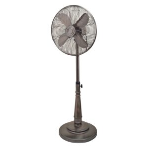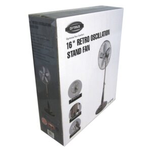 Need cooling on the go The Optimus 3-Speed 16-In. Portable Retro Oscillating Stand Fan is a smart, safe, and convenient way to cool down during hot summer months. You’ll love the look of this fan’s oil-rubbed bronze finish, old-school styling, tiered bass, and 85° of oscillating bliss. Use this classic fan in your bedroom, office, or living room.
