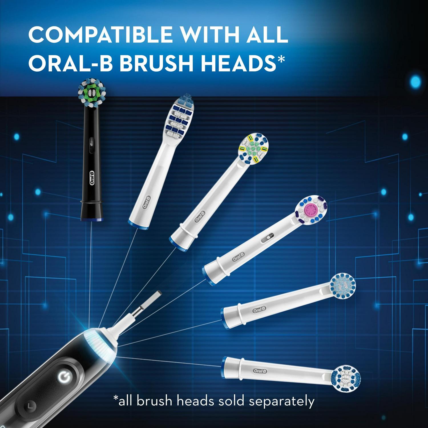 – Compatible with Oral-B brush heads for every oral care need: CrossAction, FlossAction, Precision Clean, 3D White, Sensitive Gum Care, Deep Sweep, Dual Clean