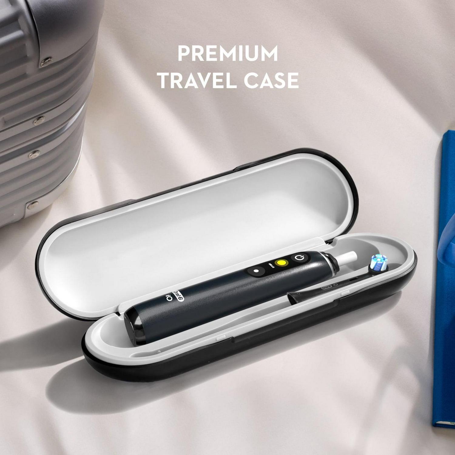 – You will receive 1 Oral-B iO Series 8 Violet Ametrine Electric Toothbrush, 3 Oral-B iO Ultimate Clean Replacement Brush Heads, and a premium travel case