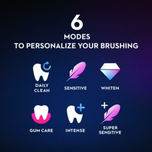 - 6 Smart Modes for personalized brushing: Daily Clean, Whitening, Gum Care, Sensitive, Intense, and Super Sensitive