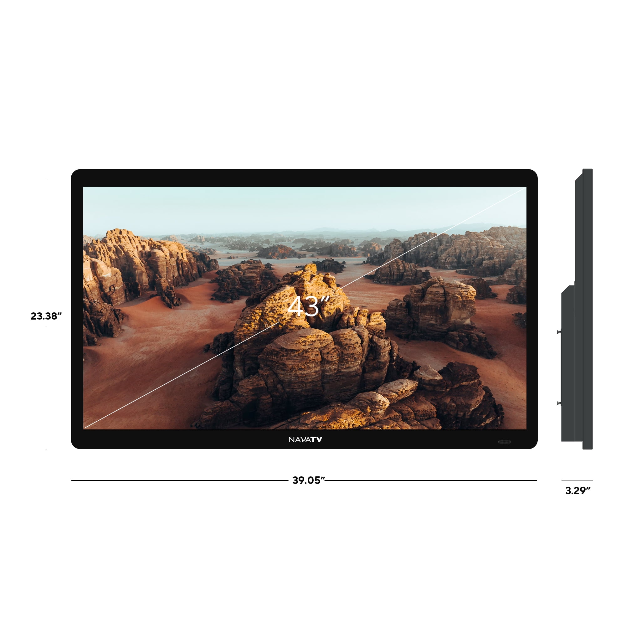 NavaTV 43″ 4K UHD LED Partial Sun Outdoor Smart TV + Wall Mount, IP54 Weatherproof, Tempered Anti-Glare Television (NVTV430SM)