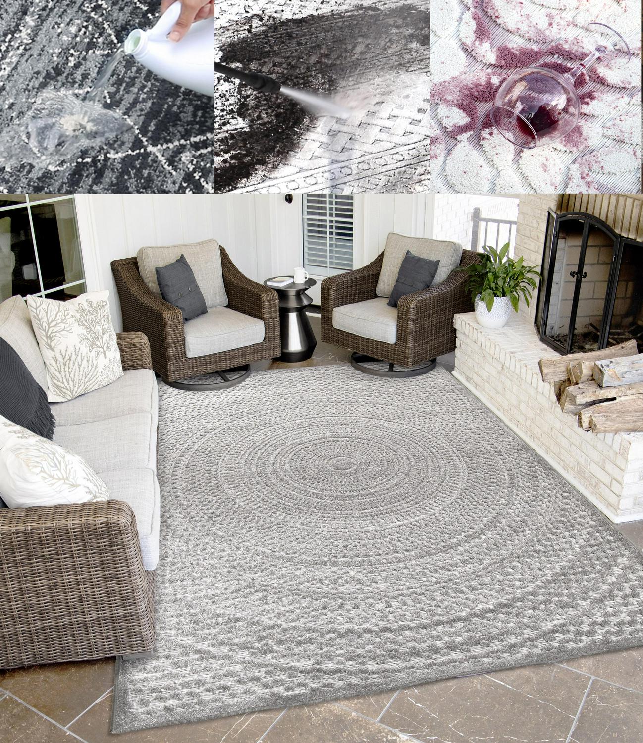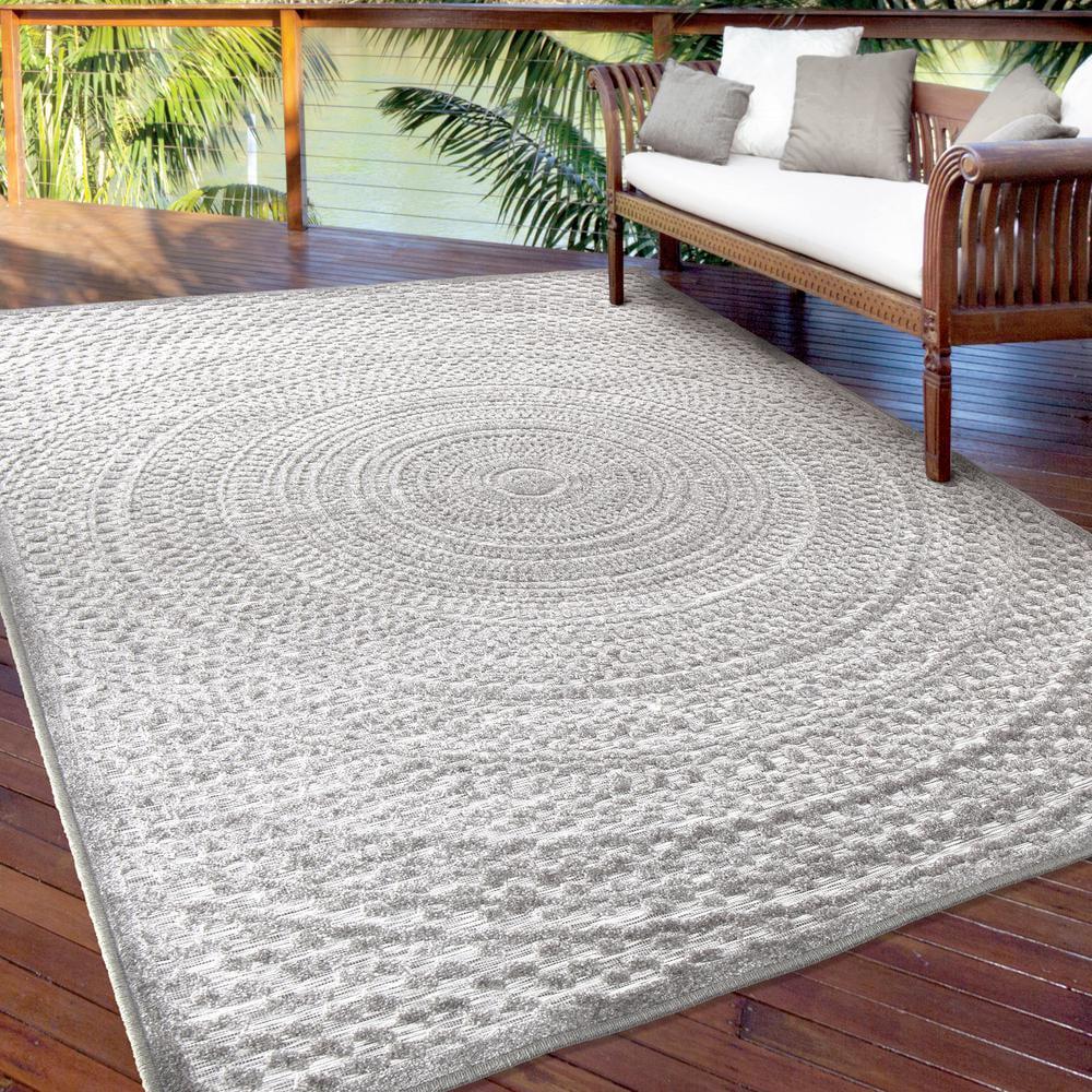 Orian Boucle Cerulean 5’2 X 7’6 Silverton Geometric Outdoor Rug
