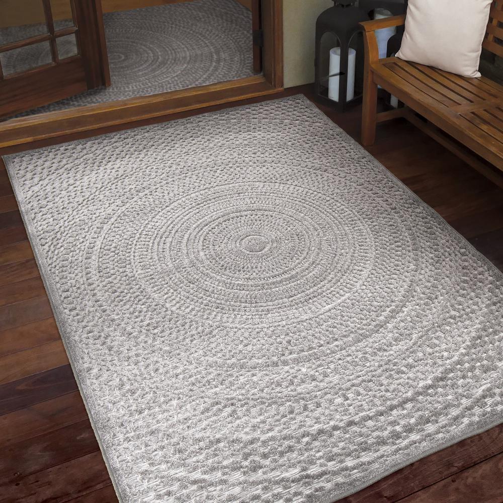 Concentric circles of geometric Gray shapes gives your rooms a spacious feel when you choose the Cerulean area rug in Silverton. Use this expressive addition in contemporary spaces for a light feel from this pleasing design.