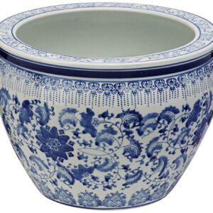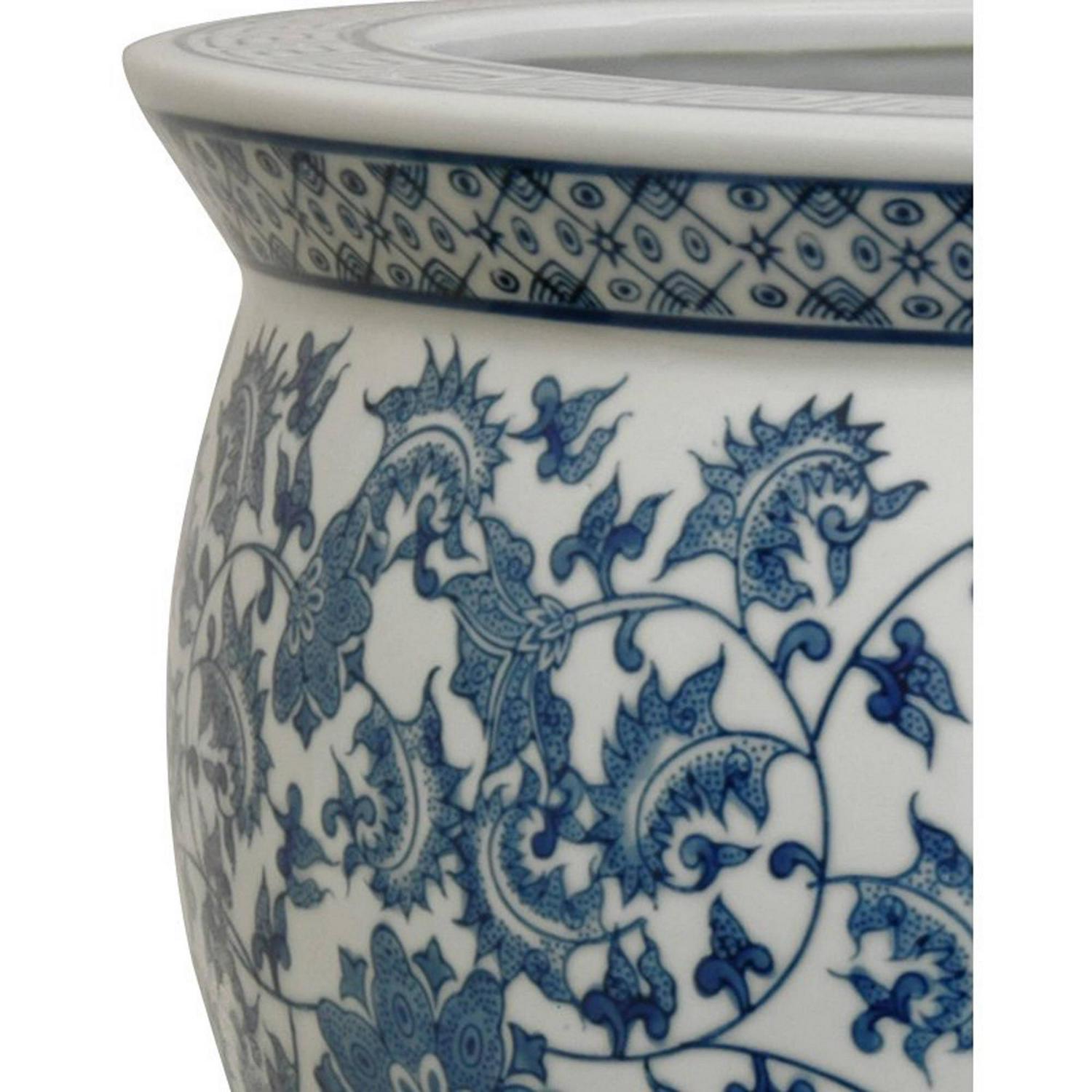 Oriental Furniture 14 Floral Blue and White Porcelain Fishbowl