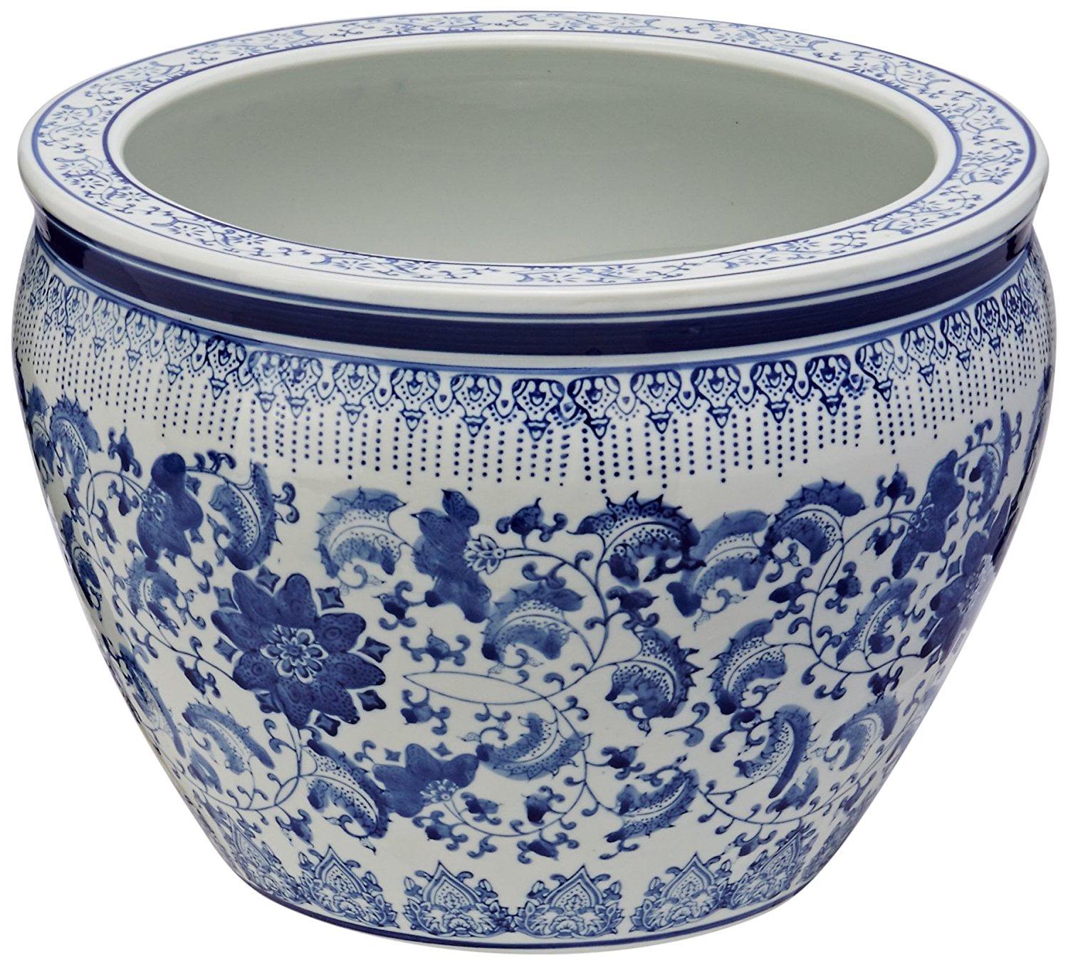 This pattern is a classic “Chinese export” floral design which became popular in Europe and America during the 19th century. Oriental fishbowls were first used in Ming era China and Japan to display gold fish, Koi, and carp, in palaces and the homes of aristocrats. Great for live plants and smaller indoor trees or flower arrangements.