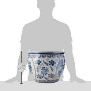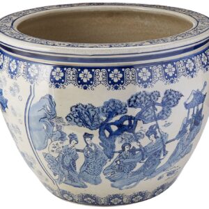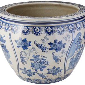 Oriental Furniture 16 Ladies Fishbowl, Blue and White Porcelain