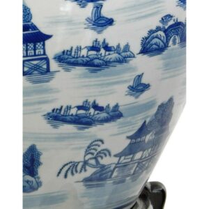 16″ Landscape Blue and White Porcelain Fishbowl: