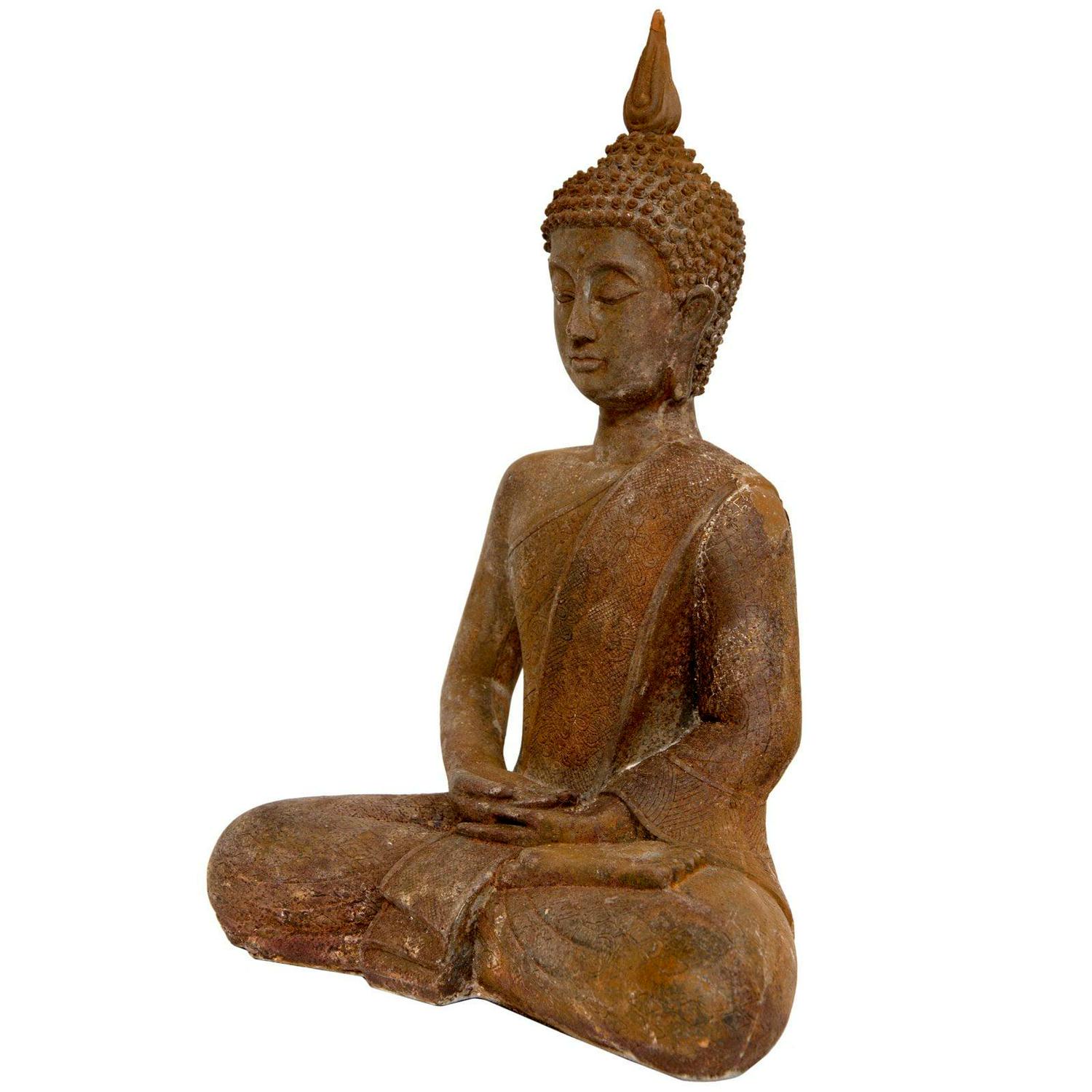 Oriental Furniture 17 Thai Sitting Zenjo-in Rust Patina Buddha Statue