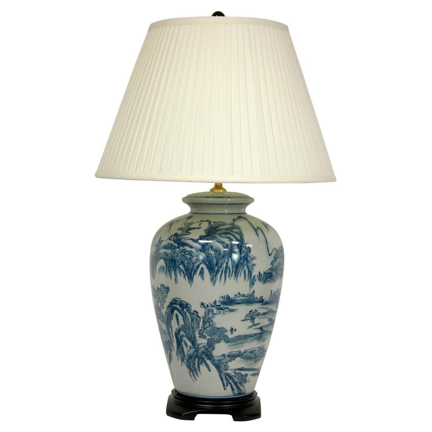Oriental Furniture 29 Blue and White Chinese Landscape Lamp, decorative item, oriental design, any occasion, any room