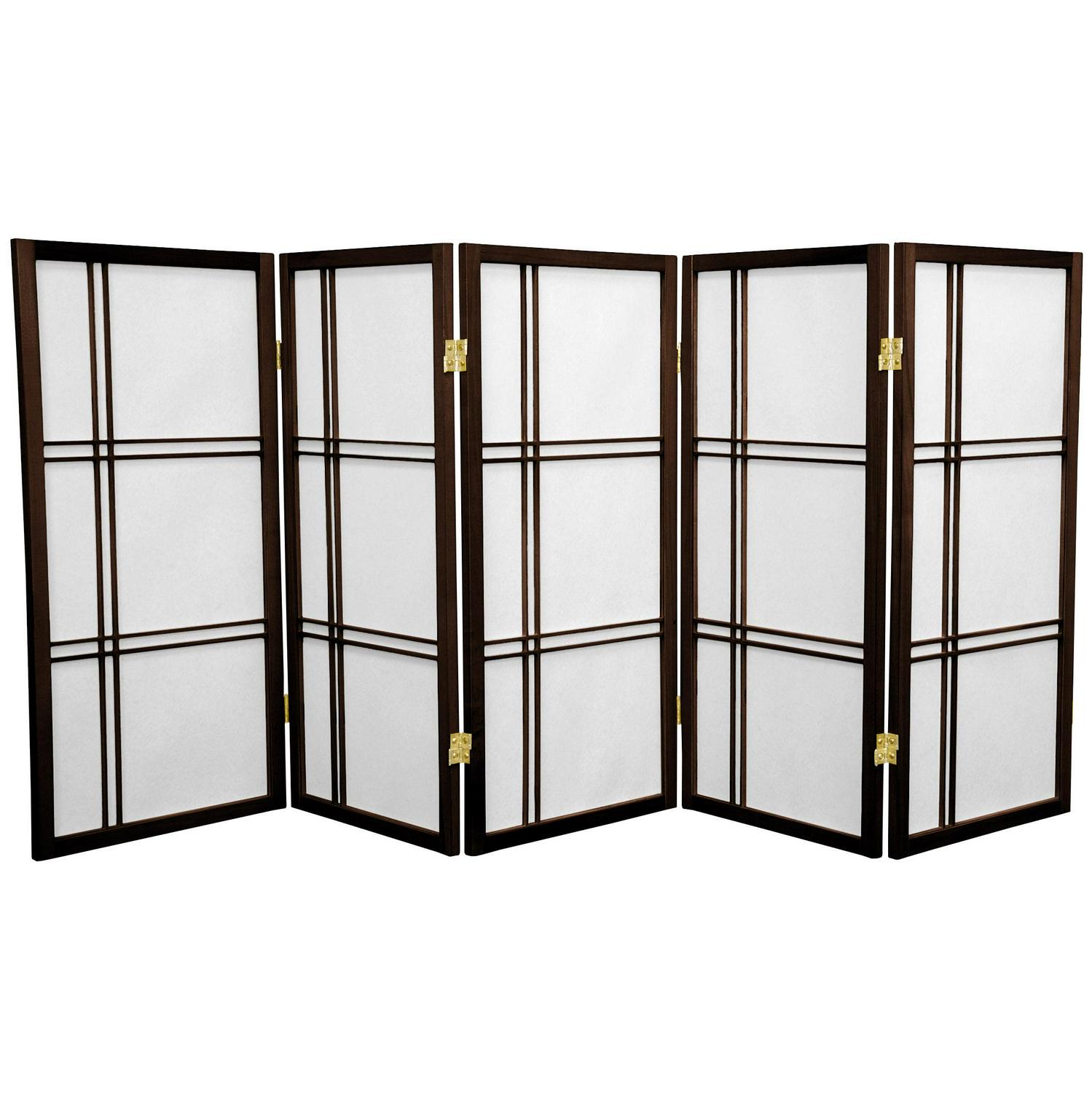 Oriental Furniture 3 Ft Tall Double Cross Shoji Screen, 5 panel, walnut,