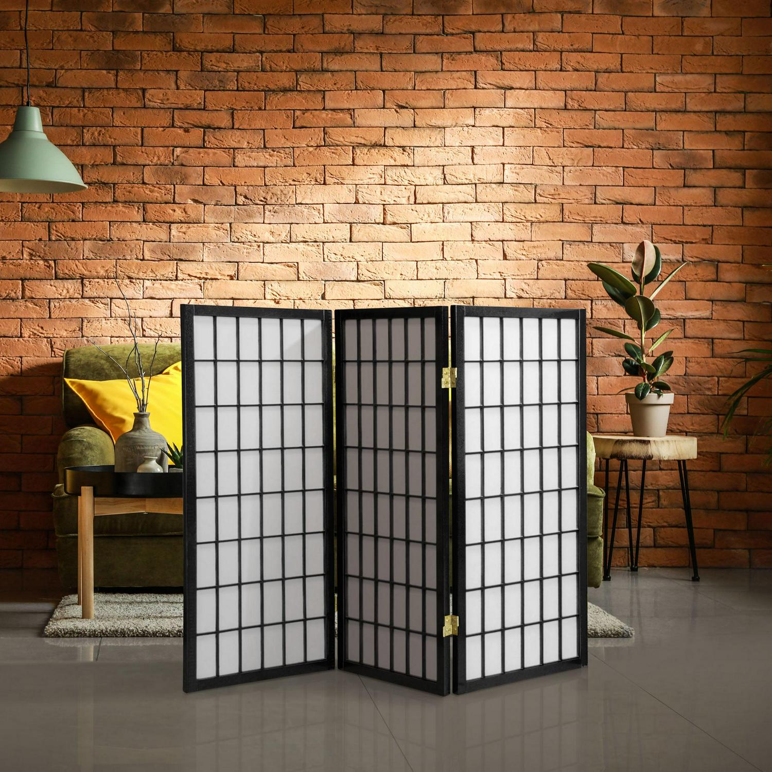 Oriental Furniture 3 Ft Tall Window Pane Shoji Screen, Black, 3 panel