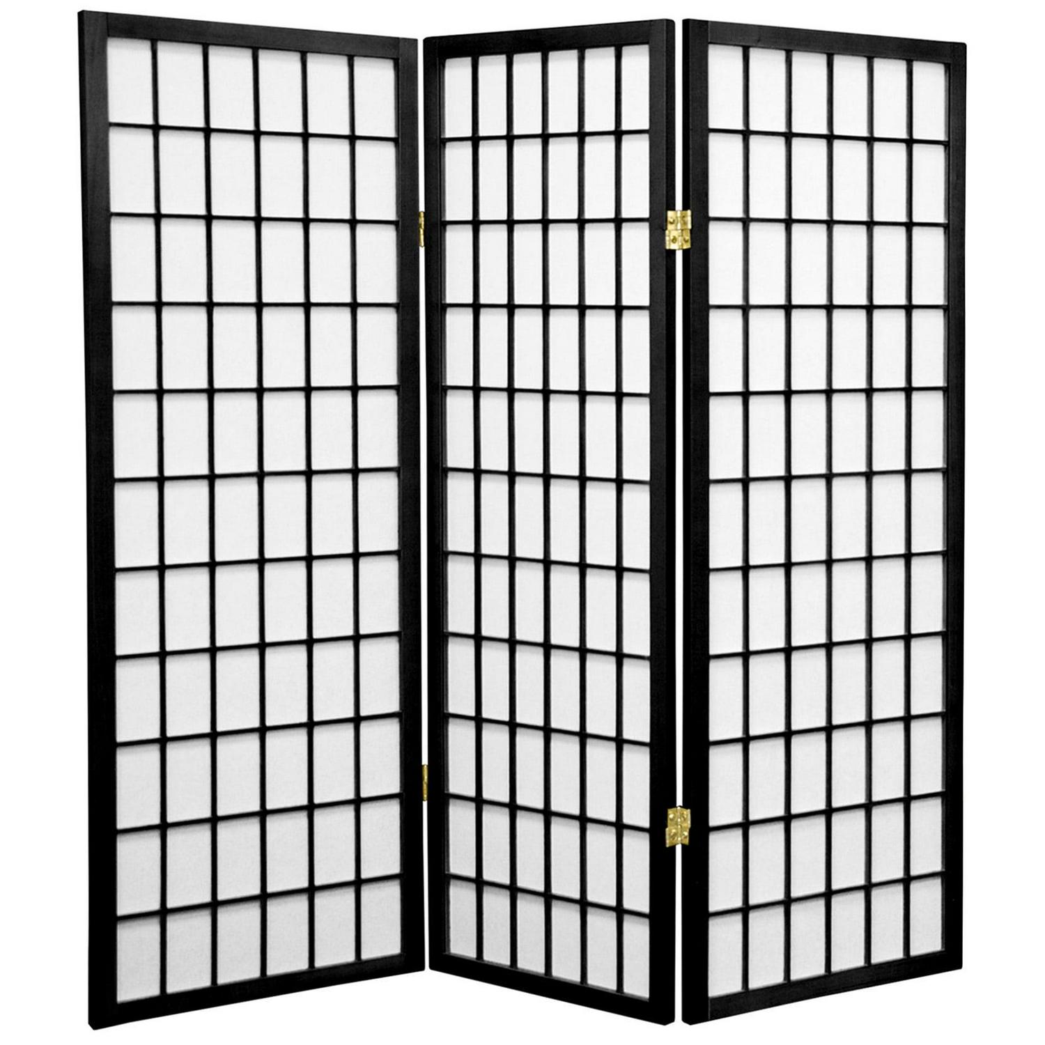 Oriental Furniture 4 ft. Tall Window Pane Shoji Screen – Black – 3 Panel