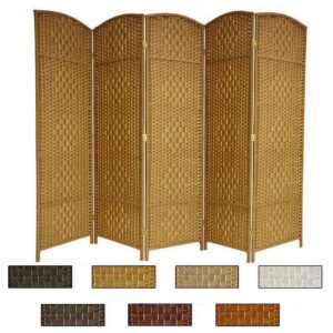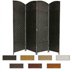 Add some character to your home with this 6′ Tall Diamond Weave Fiber Room Divider. It is a practical accessory and beautiful accent to enhance your decor. The arch top panels on this diamond weave room divider are wider than most. Tough spun plant fiber cord is interwoven with thick wooden dowels for quality and long life. The distinctive medallions are repeated five per panel, creating a stylish rattan look. This room divider screen is nice to have for creating an area for privacy in any space. The material is made to hold dye beautifully, making a rich, warm, beautifully crafted appearance. It’s constructed for some light and air to pass through and does not shut light out completely. Get it in your choice of assorted sizes and colors.