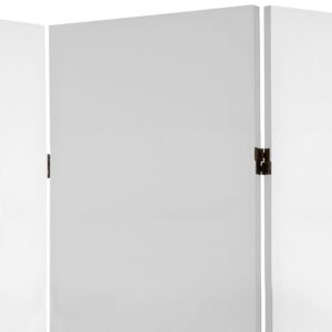 At seventy one inches, these plain design room dividers are just under six feet tall; a classic height for a portable privacy screen. Constructed with sturdy, mitered Spruce wood panel frames. Art quality white canvas fabric is wrapped around the frames to create opaque panel shades. Either use these low priced high quality room dividers as they are, without artwork, or add your own art, photos, maps, or documents. They are a great place to begin when designing an inexpensive booth for a trade show. For business or pleasure, there are innumerable ways to use these simple, practical, affordable partitions.