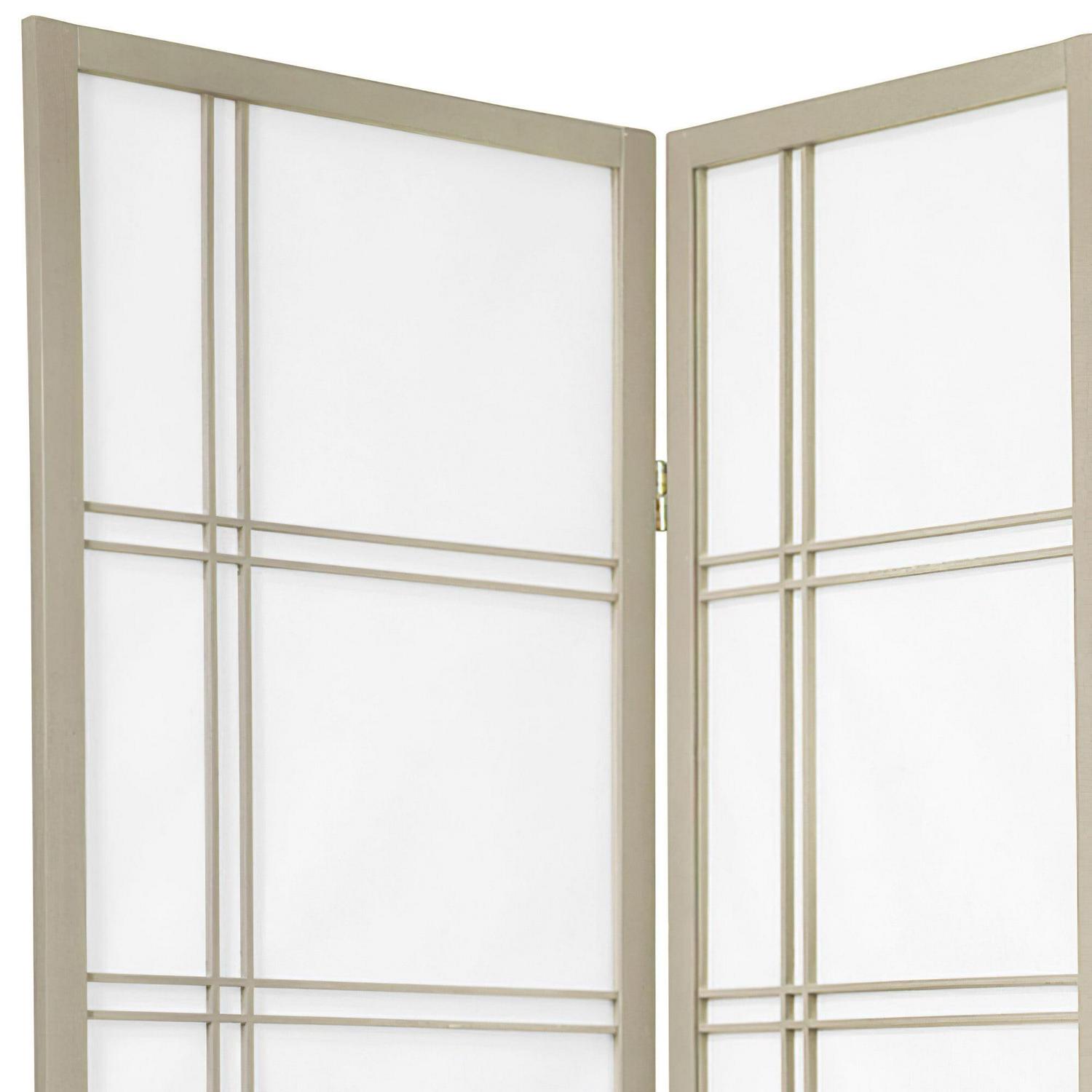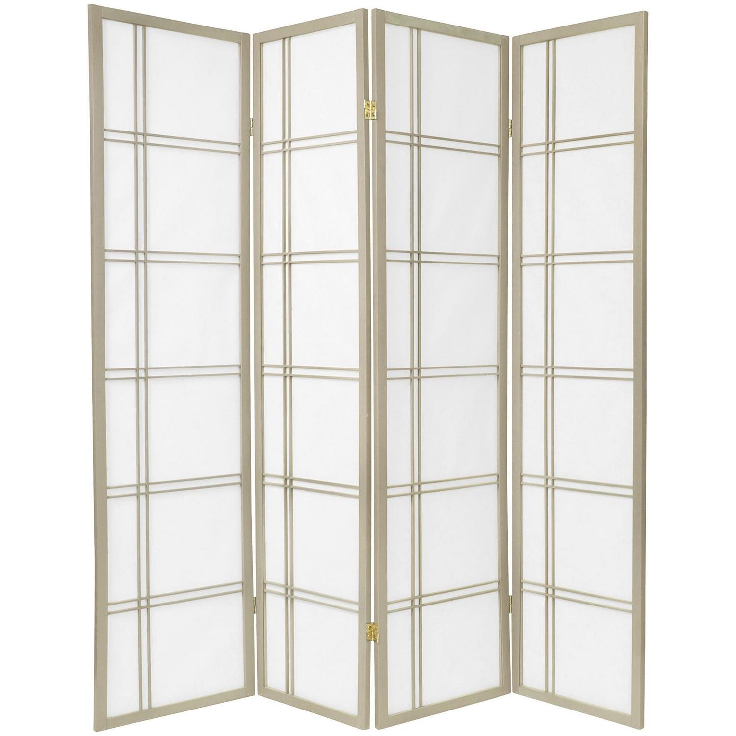 Oriental Furniture 6 Ft Tall Double Cross Shoji Screen Special Edition, 4 panel, grey