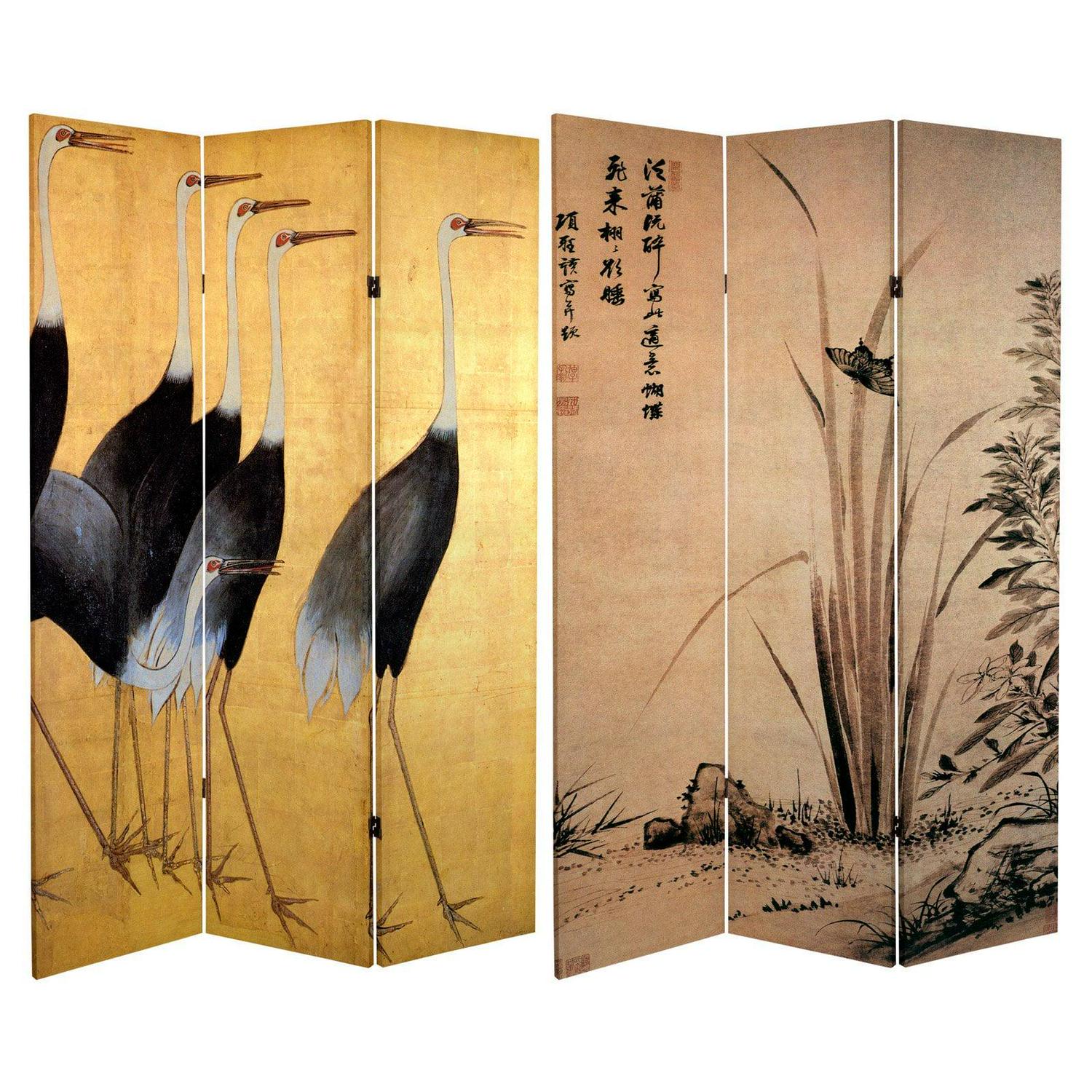 Oriental Furniture 6 ft. Tall Double Sided Cranes Room Divider – 4 Panel