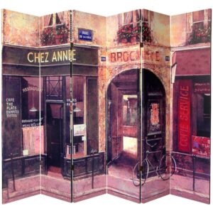 6′ Tall Double Sided French Cafe Canvas Room Divider 6 Panel: