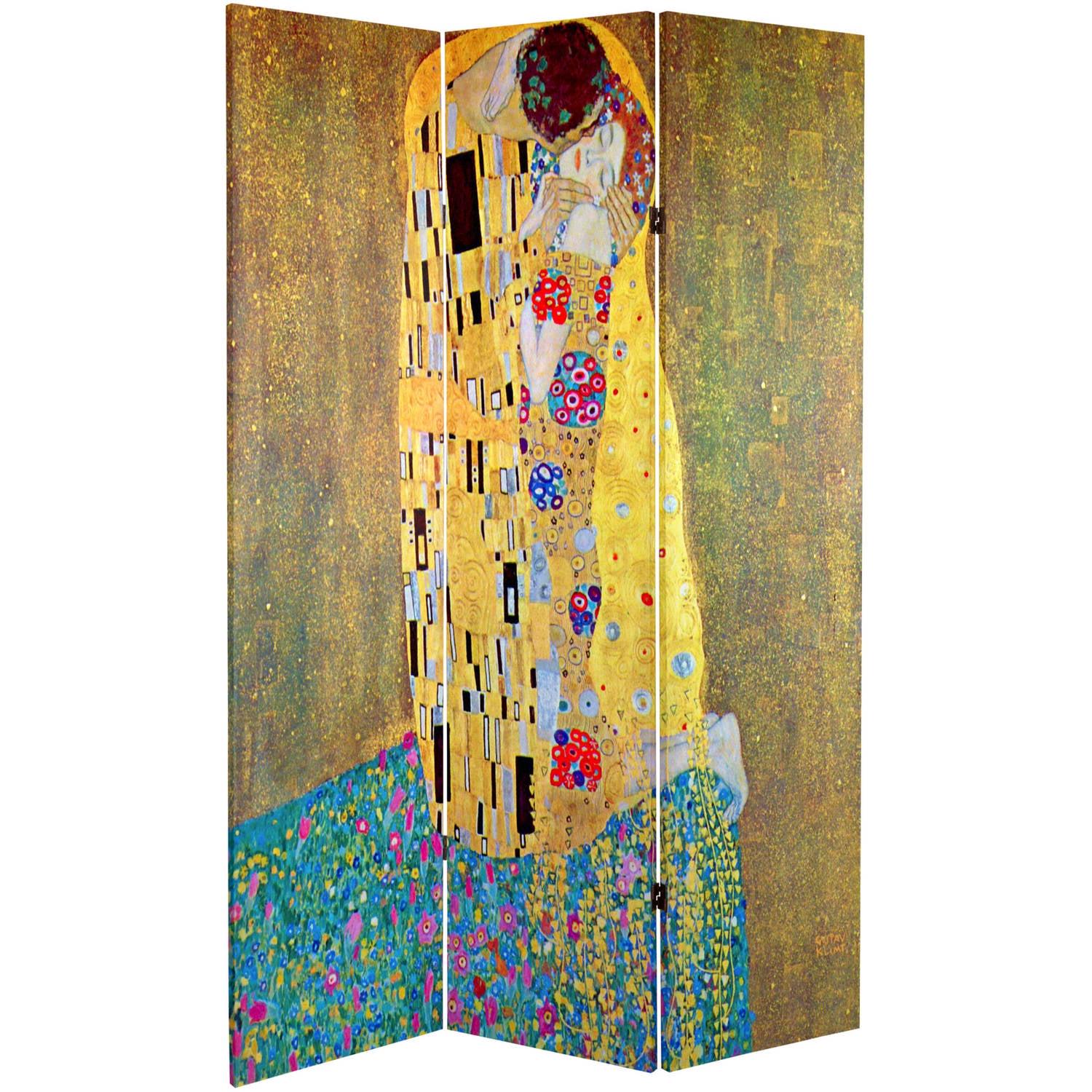 Oriental Furniture 6 ft. Tall Klimt ‘The Kiss’ Canvas Room Divider – 3 Panel