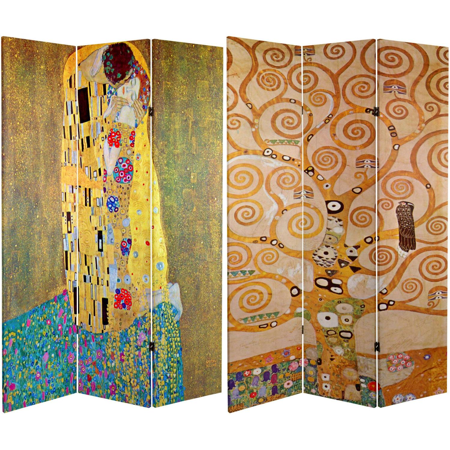 6′ Tall Double Sided Works of Klimt Room Divider, The Kiss/Tree of Life: