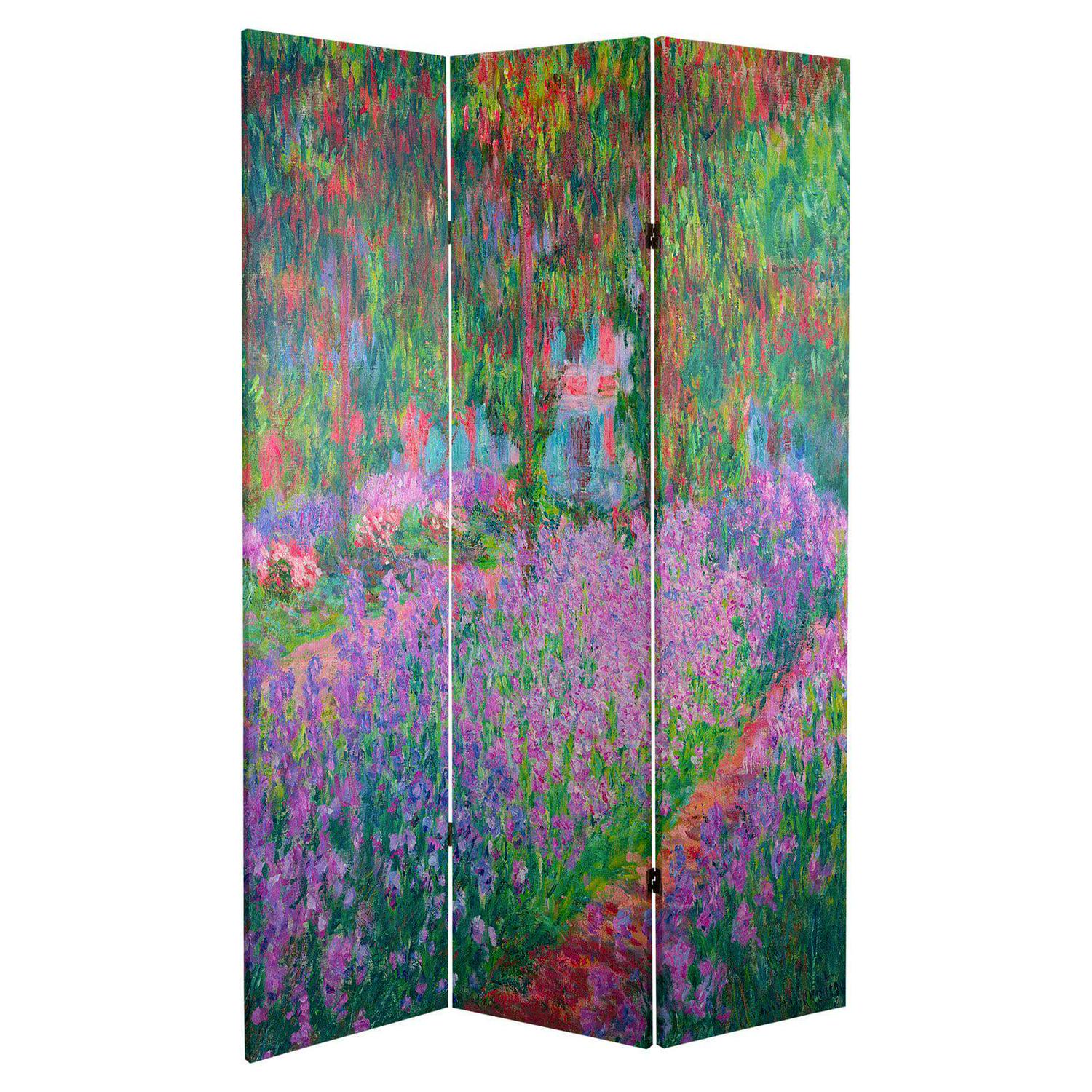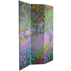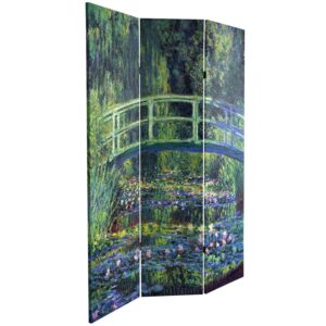 Oriental Furniture 6′ Tall Double Sided Works of Monet Canvas Room Divider, Water Lily/Garden:
