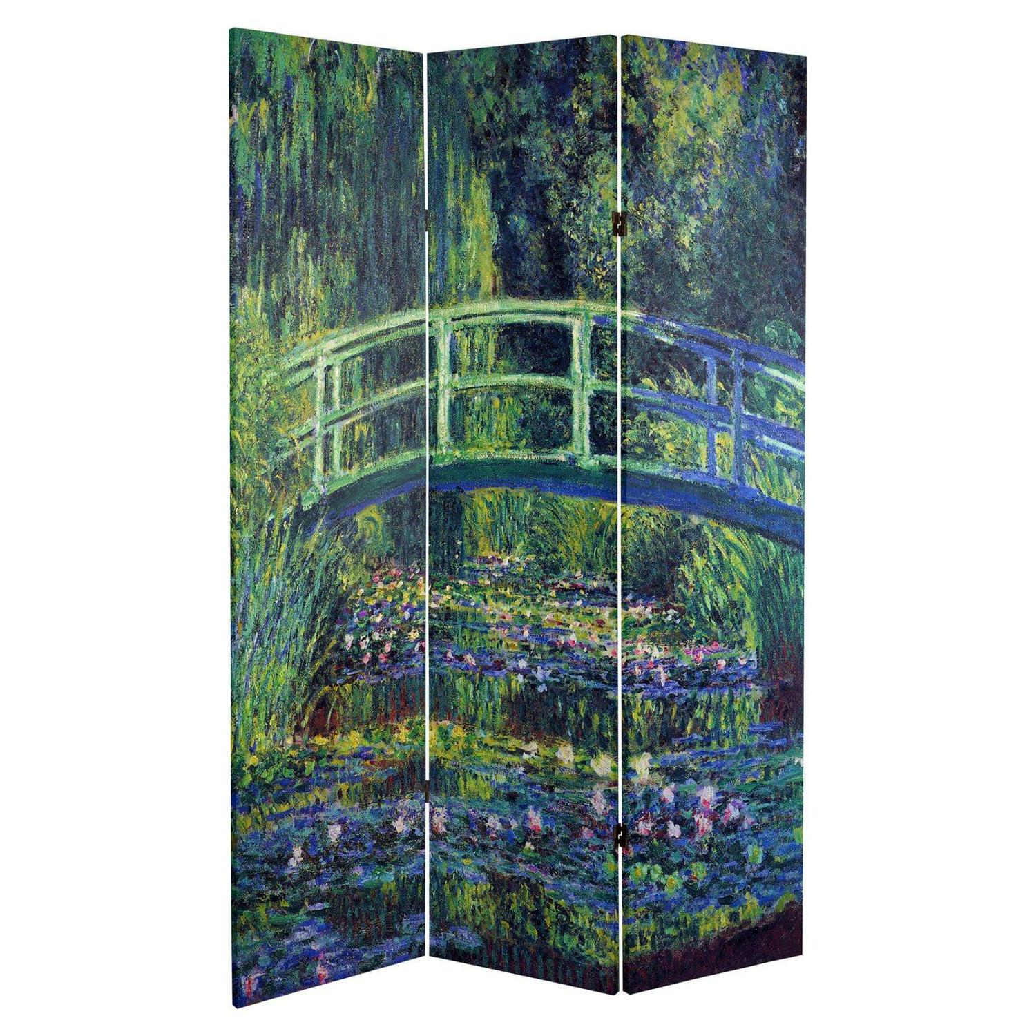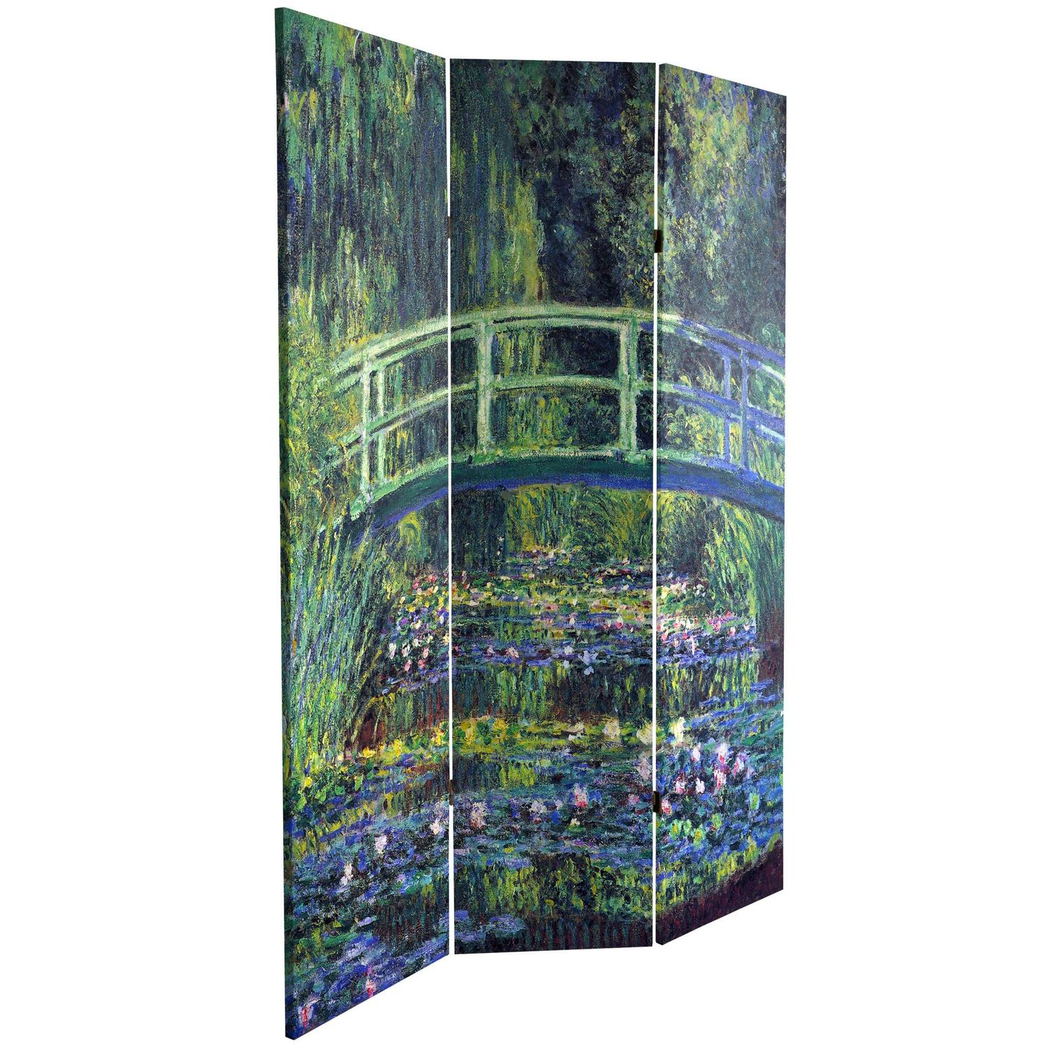 Oriental Furniture 6 ft. Tall Monet Canvas Screen – Water Lily/Garden – 3 Panel