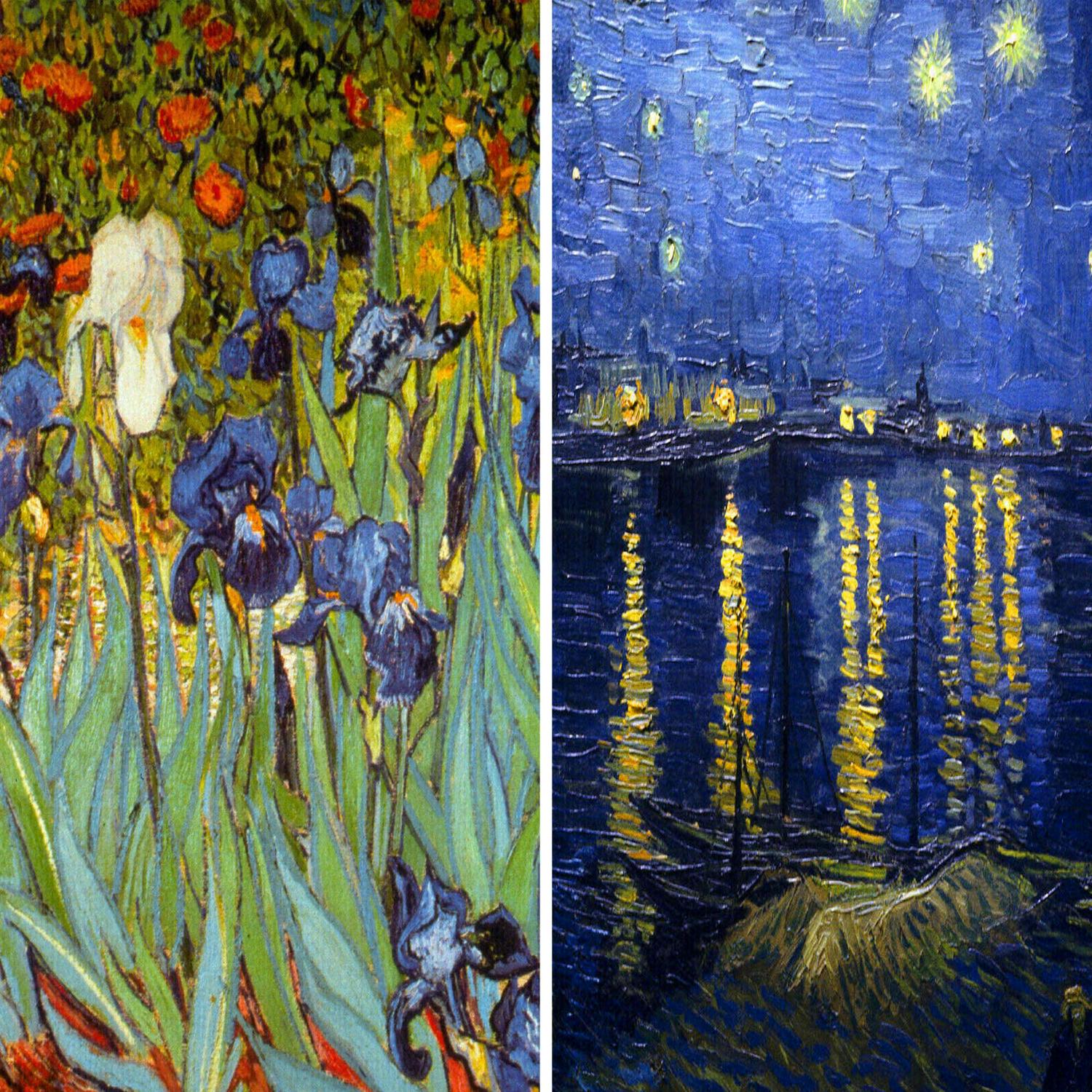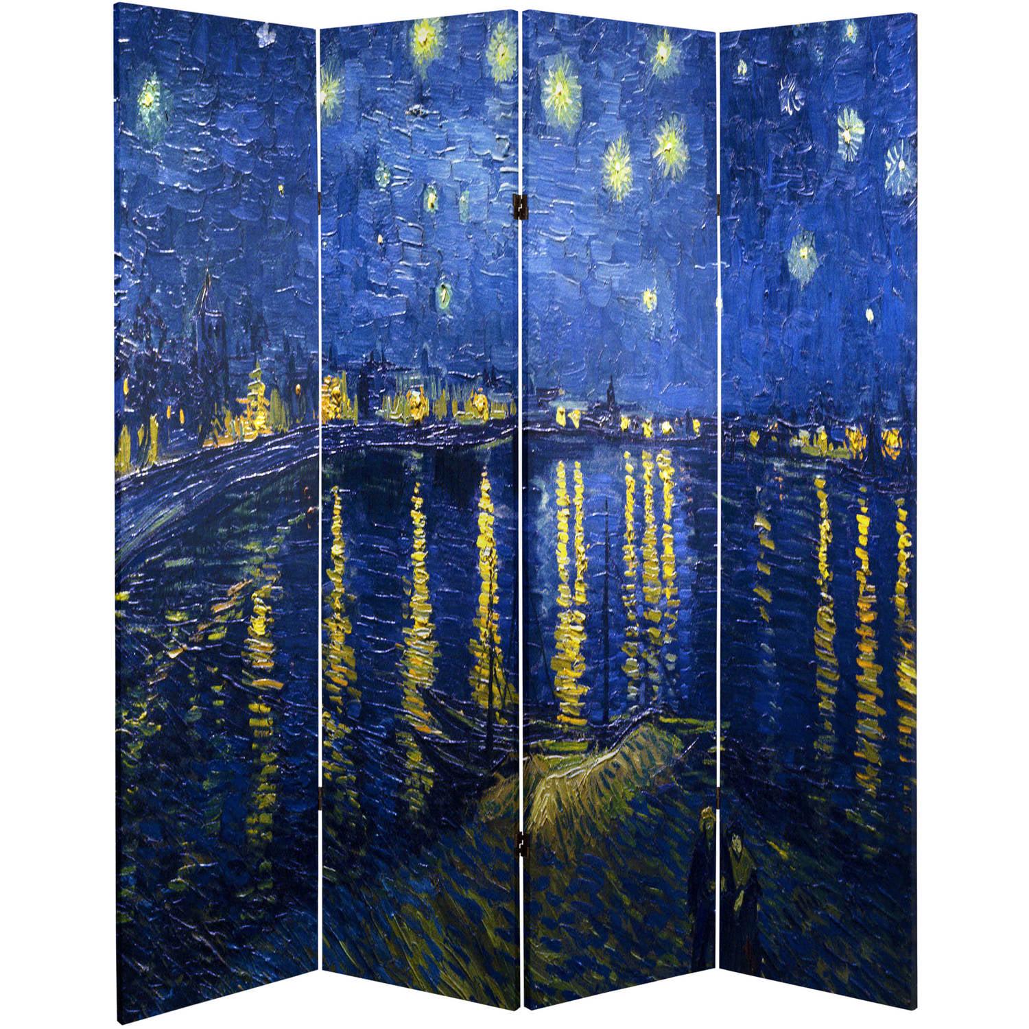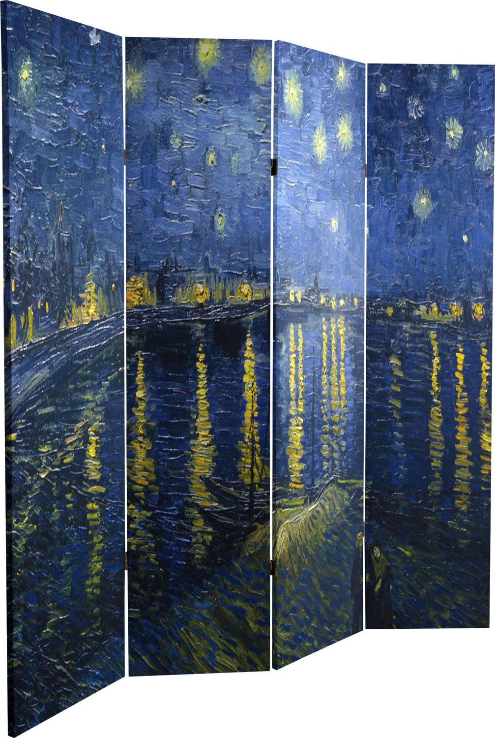 6′ Tall Double Sided Works of Van Gogh Canvas Room Divider, Irises/Starry Night Over Rhone: