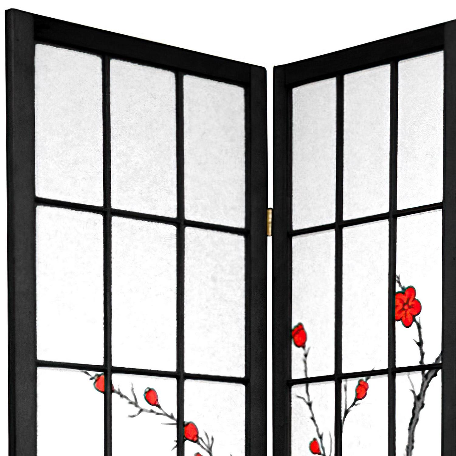 Oriental Furniture 7 ft. Tall Cherry Blossom Shoji Screen – Black – 3 Panel