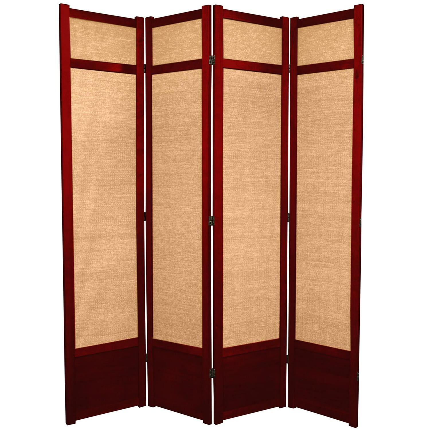 Oriental Furniture 7 Ft Tall Jute Shoji Screen, 4 panel, rosewood color