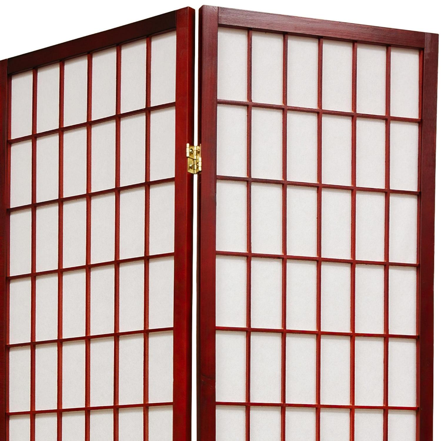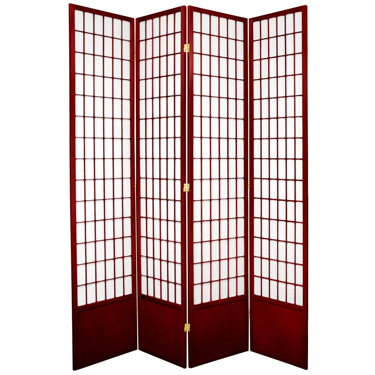 Oriental Furniture 7 Ft Tall Window Pane Shoji Screen, Shoji paper, Shoji screen, Rosewood color, 4 panel