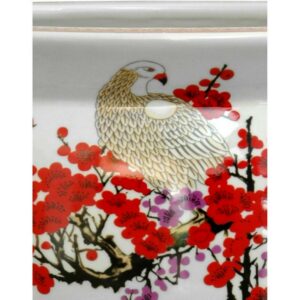 Large Asian fishbowl, perfect for indoor trees or silk flower arrangements. The bright Japanese cherry blossom and white crane design is an iconic East Asian art motif, symbolic of household felicity and harmony, making this a great wedding or housewarming gift.