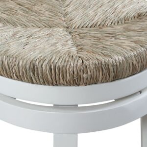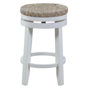 Complete a contemporary BoHo or Farmhouse style kitchen with our 26″ swivel stools sold as a pair. Easy-going seagrass woven seat and solid wood frame in a white finish set the stage for relaxed, casual dining at any counter or kitchen island. Smooth swivel motion and circular footrest ensure comfortable eating and conversation. Simple assembly.