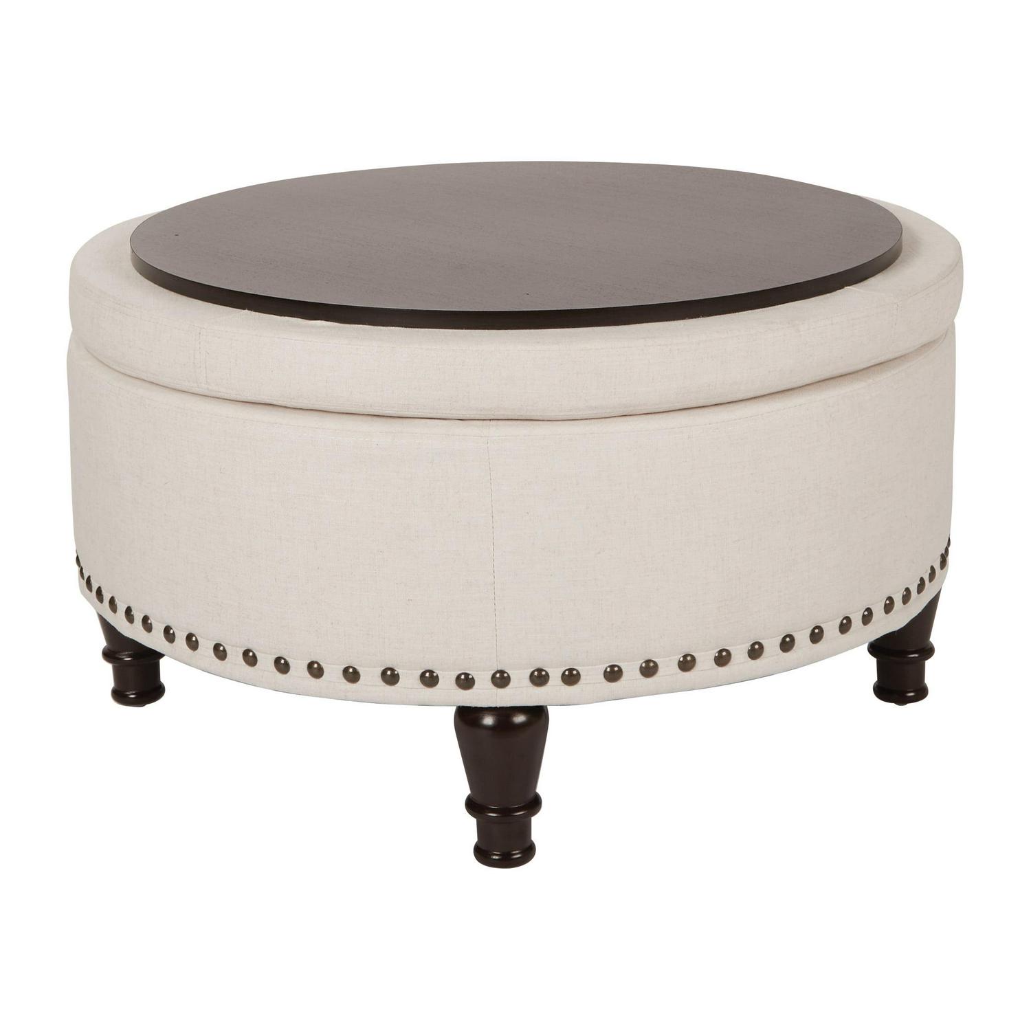 - Features: Office Star Products, Storage, Ottoman, Round ottoman, tray, Tray top, nail head