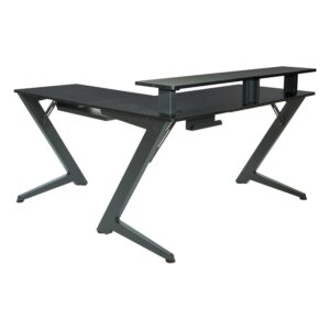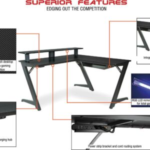 OSP Home Furnishings Avatar Battlestation L-Shape Game Desk with Carbon Top and Matte Black Legs